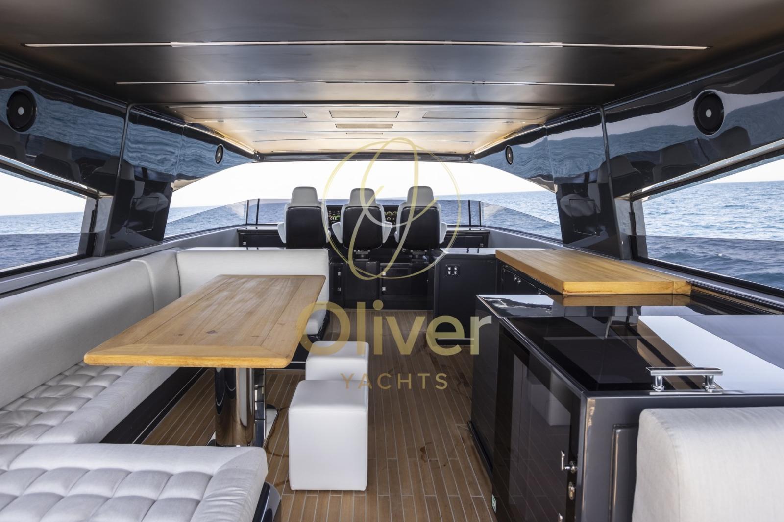 Embarquer à bord du S07, c’est entrer dans une autre dimension. Le toit rigide crée un environnement léger et aéré, similaire à celui d’un flybridge, mais avec la sensation d’être encore plus proche de la mer. Les fenêtres latérales réglables vous permettent de contrôler la ventilation et de profiter d’une vue panoramique à couper le souffle.