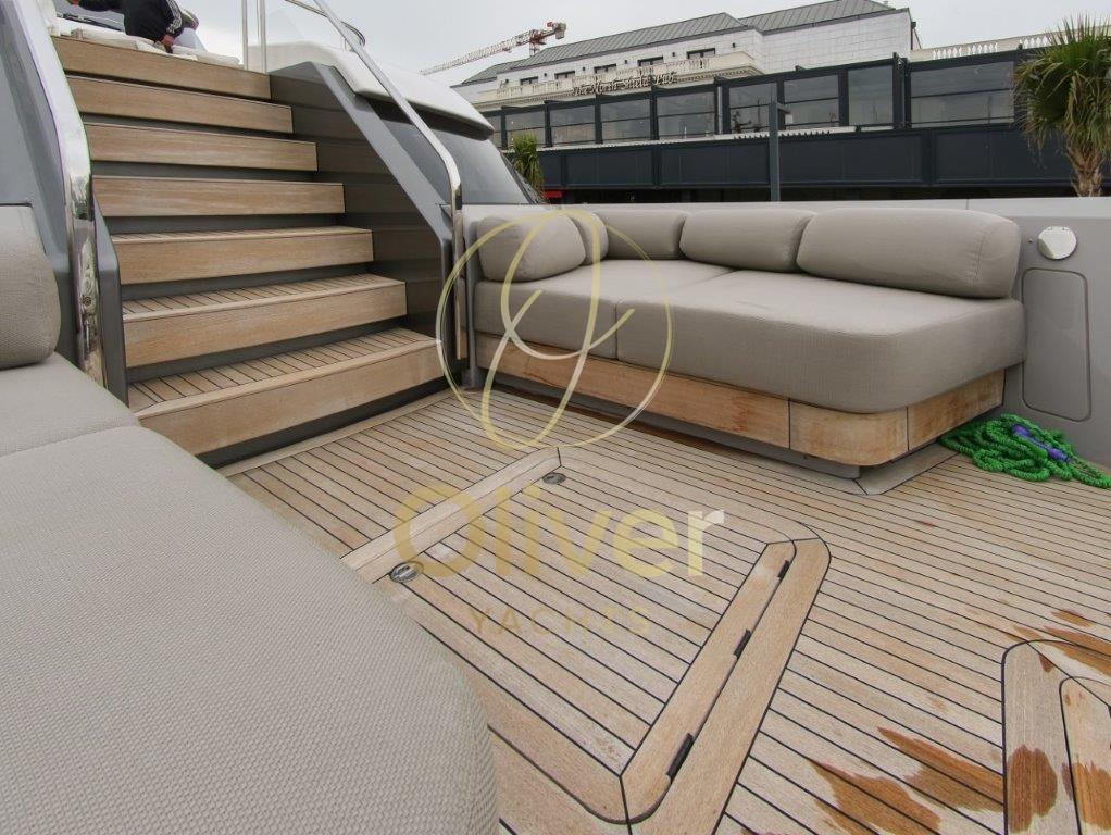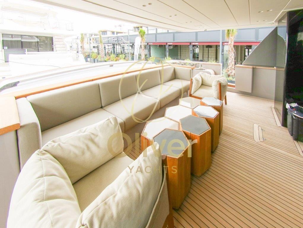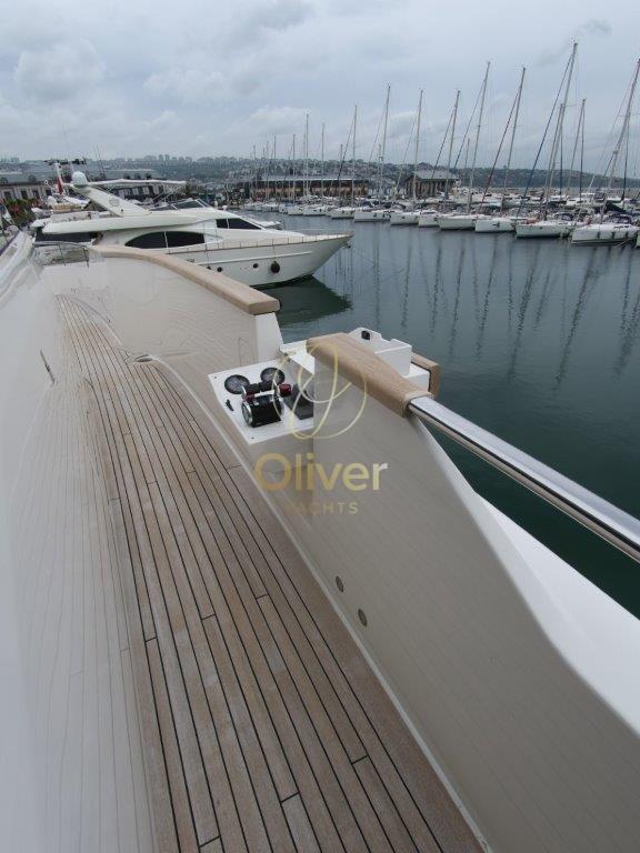 Alarme gaz, Alarme moteur, Alarme de pompe de cale, Eau sous pression, Trim hydraulique, Passavant en teck, Couleur spéciale, Douche de cockpit, Phare de poursuite, Flaps hydrauliques, Garage à annexe, Bossoirs, Extincteur(s) fixe(s), Lavage de chaine, Éclairage de courtoisie, Spots sous-marins, Passerelle, Pompe de cale automatique, Porte latérale, Porte latérale, Cockpit en teck, Prise de quai, Connexion eau sous pression à quai, Répétiteur électronique, Guindeau Hydraulique, Echelle de bain, Selles pour Annexe, Système de filtration des eaux usées, Stabilisateurs (zero speed), table de cockpit, Table pliante de salon, Annexe, Filières avec sortie latèrale, Corne, Pont en teck, Winch électrique arrière, Winch électrique avant.
