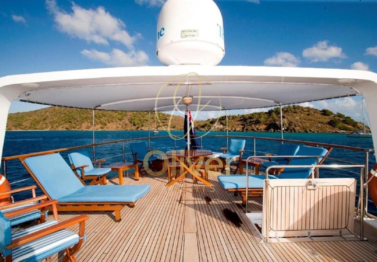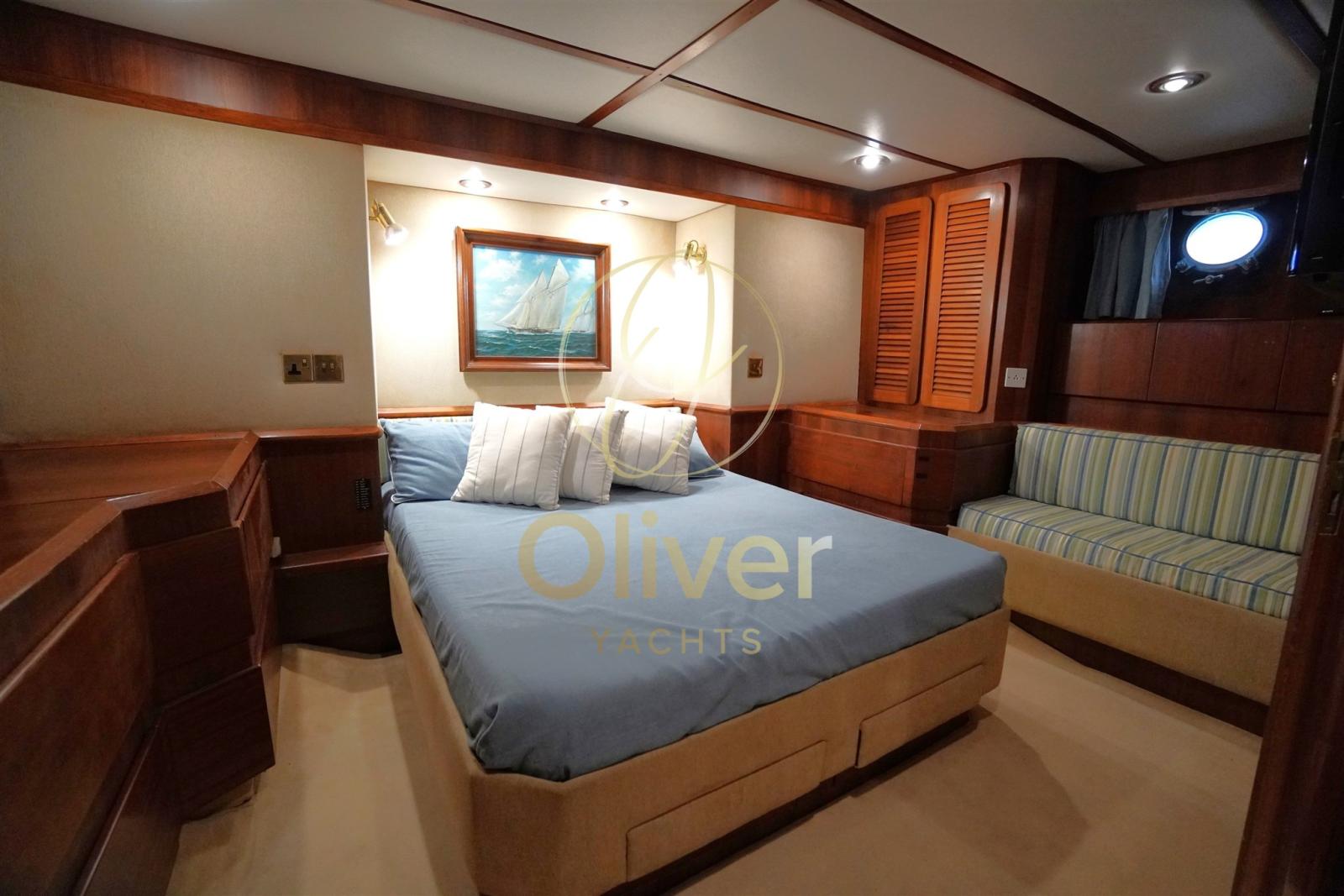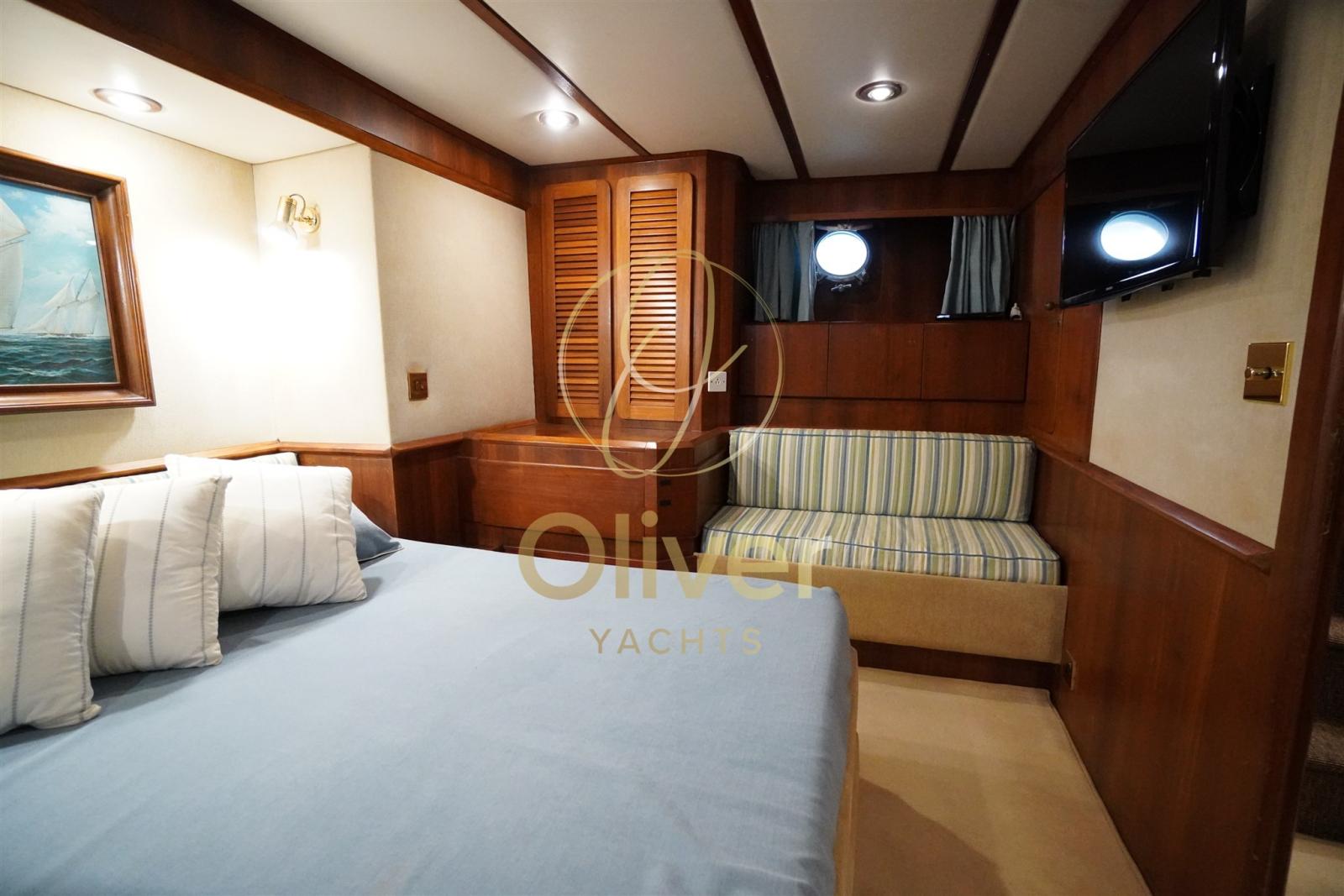 Alarme gaz, Alarme moteur, Alarme de pompe de cale, 2 Ancre, Eau sous pression, Passavant en teck, Douche de cockpit, Phares fixes arrière, Phare de poursuite, Grue de flybridge, Extincteur(s) fixe(s), Lavage de chaine, Éclairage de courtoisie, Passerelle, Pompe de cale automatique, Porte latérale, Porte latérale, Cockpit en teck, Prise de quai, Connexion eau sous pression à quai, Onduleur, Guindeau Hydraulique, Echelle de coupée, Echelle de bain, Selles pour Annexe, Système de filtration des eaux usées, Stabilisateurs, table de cockpit, Table pliante de salon, Filières avec sortie latèrale, Corne, Pont en teck, Winch électrique arrière.