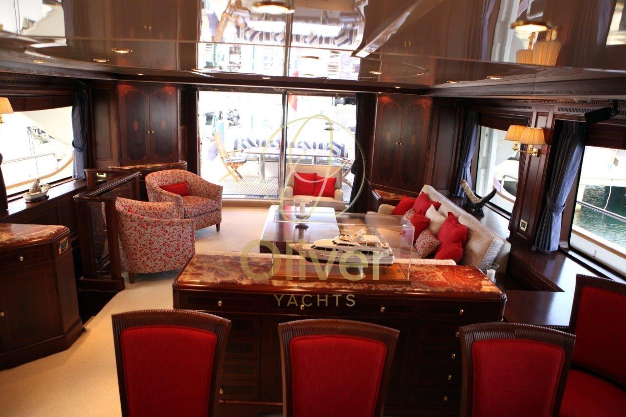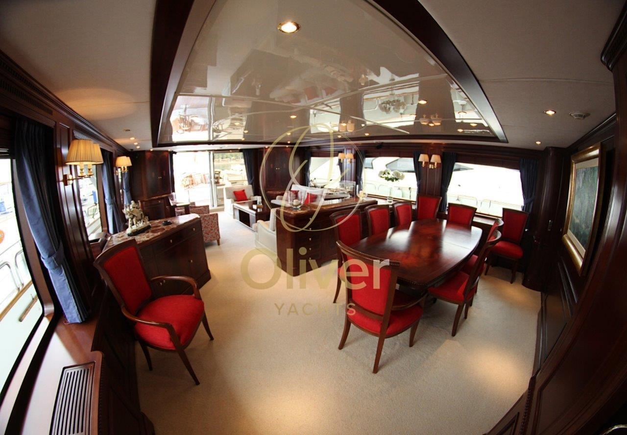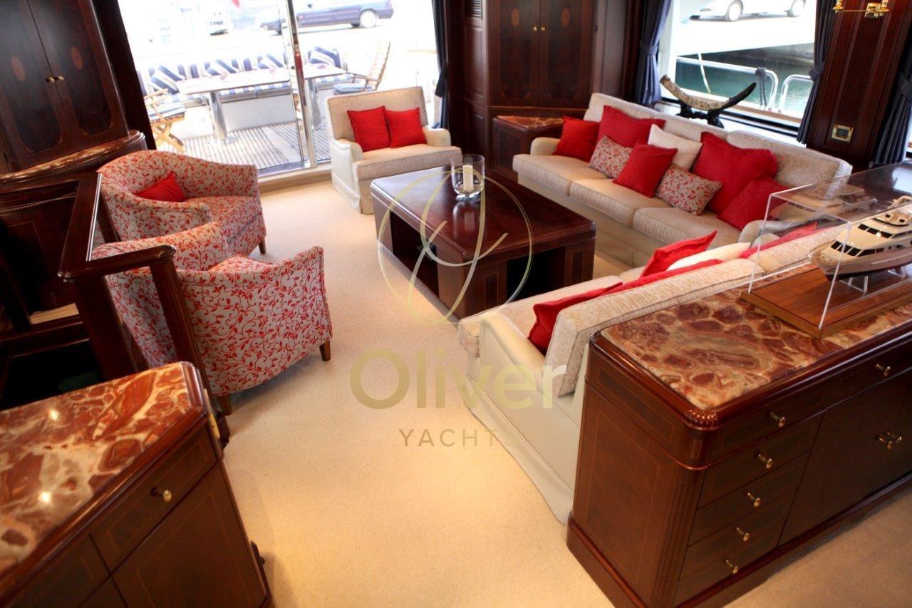 L’intérieur de la Benetti 100 est un véritable chef-d’œuvre de design et de confort. Des matériaux nobles, tels que le bois et le marbre, s’associent à un mobilier raffiné et à un éclairage doux pour créer une atmosphère d’élégance pure. L’aménagement des espaces est conçu pour assurer un maximum de confort aux clients, avec de grands espaces de détente et de bronzage, une cuisine spacieuse et une salle à manger formelle.