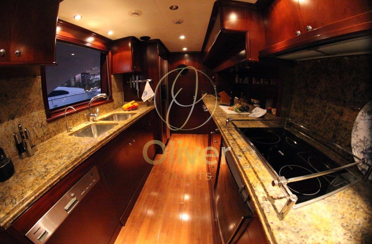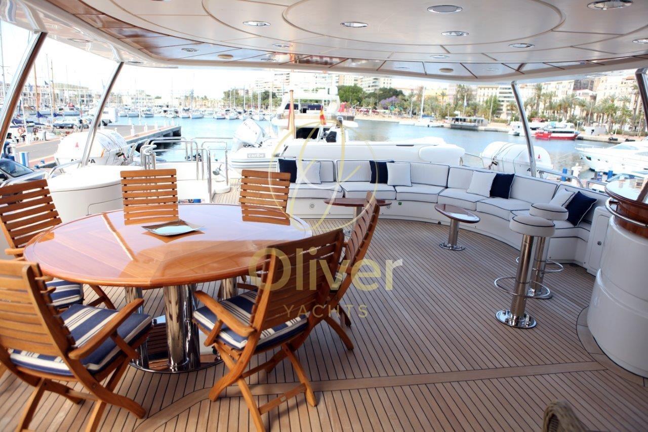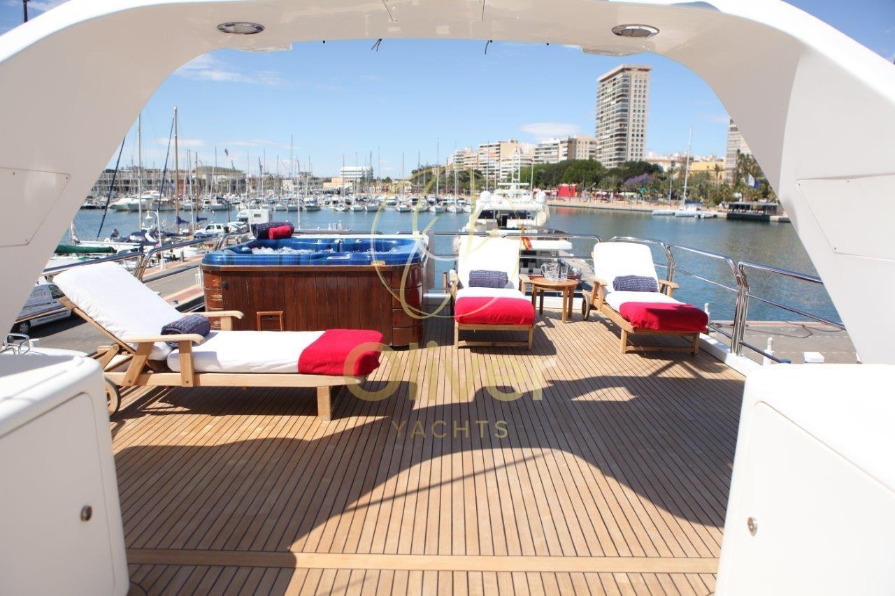 L’intérieur de la Benetti 100 est un véritable chef-d’œuvre de design et de confort. Des matériaux nobles, tels que le bois et le marbre, s’associent à un mobilier raffiné et à un éclairage doux pour créer une atmosphère d’élégance pure. L’aménagement des espaces est conçu pour assurer un maximum de confort aux clients, avec de grands espaces de détente et de bronzage, une cuisine spacieuse et une salle à manger formelle.