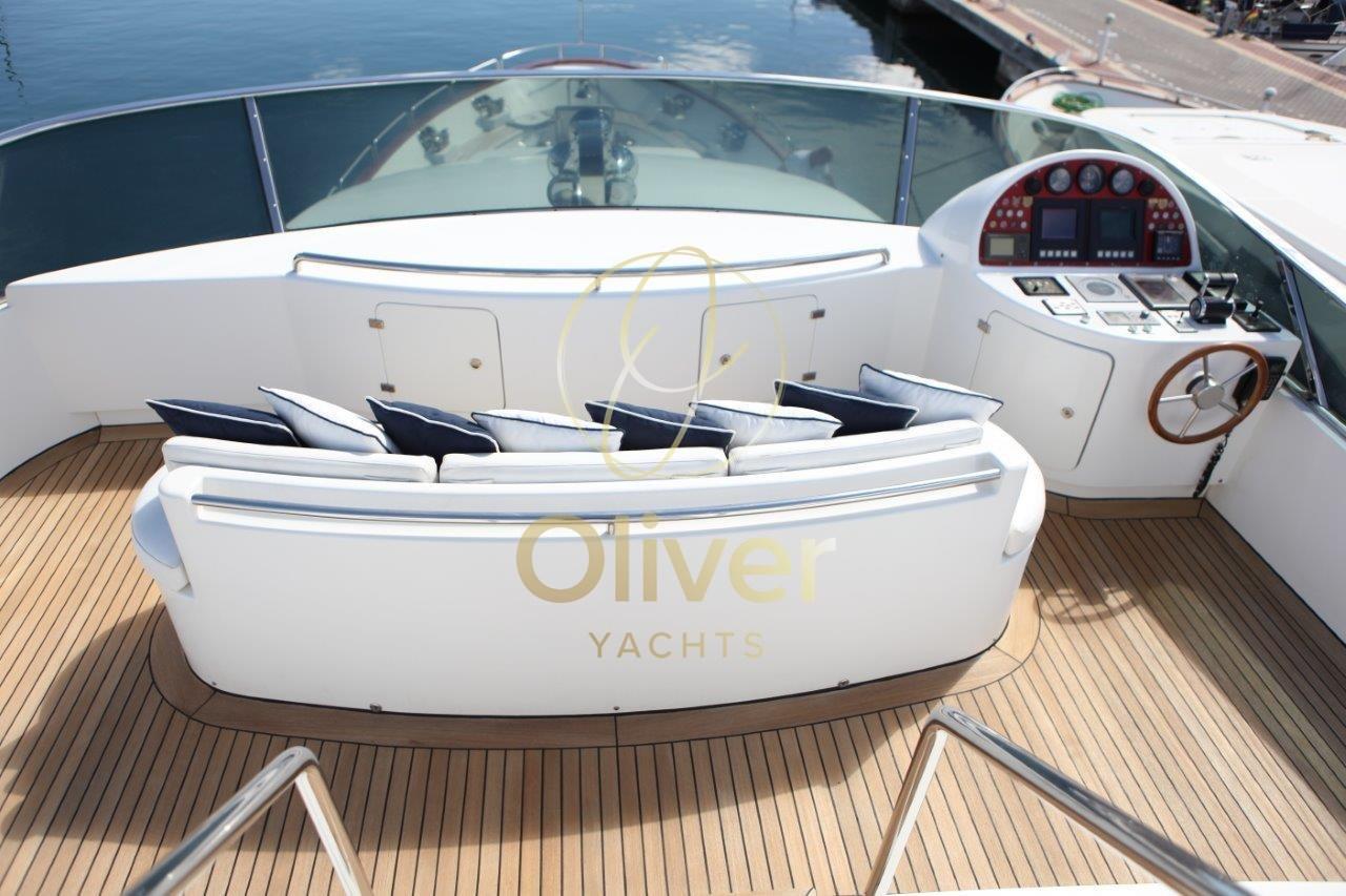 Alarme gaz, Alarme moteur, Alarme de pompe de cale, 2 Ancre, Eau sous pression, Passavant en teck, Douche de cockpit, Phares fixes arrière, Phare de poursuite, Bossoirs, Bossoirs pour annexe, Extincteur(s) fixe(s), Éclairage de courtoisie, Spots sous-marins, Passerelle, Pompe de cale automatique, Pompe de cale manuelle, Porte latérale, Porte latérale, Cockpit en teck, Prise de quai, Connexion eau sous pression à quai, Répétiteur électronique, Guindeau Hydraulique, Echelle de bain, Selles pour Annexe, Système de filtration des eaux usées, table de cockpit, Annexe, Filières avec sortie latèrale, Corne, T-Top, Pont en teck, Winch électrique arrière, Winch électrique avant.