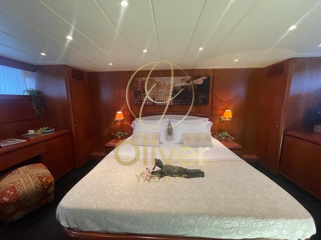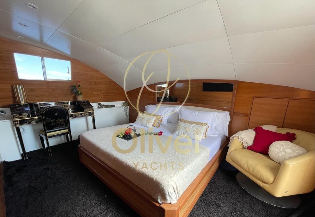 La suite parentale, située au niveau du pont, est une véritable retraite de luxe.