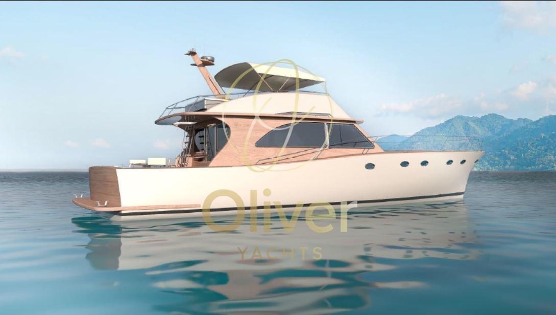 Coque semi-planante aux lignes classiques et élancées, Poupe inversée et coque ronde en V profond à géométrie variable pour une excellente tenue en mer et une excellente stabilité de cap, Vitesse nominale de 23 nœuds et vitesse de croisière de 18 nœuds, Moteur in-bord de 2x730 ch, Propulsion par ligne d’arbre avec hélice à 4 pales, Intérieurs spacieux et confortables sur deux niveaux, Cabine propriétaire à l’avant et deux cabines invités, toutes avec salles de bains indépendantes, Cabine équipage avec accès séparé, Style intérieur classique avec mobilier fabriqué sur place, Grand cockpit pouvant être utilisé pour la pêche ou la croisière, Flybridge équipé pour une croisière confortable et équipé d’une annexe avec bossoir hydraulique,