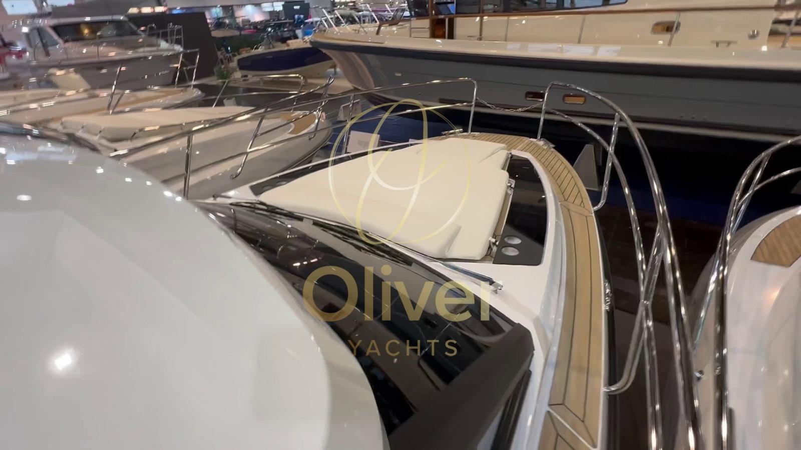 Alarme gaz, Alarme moteur, Alarme de pompe de cale, Ouverture du compartiment moteur électrique, Auto Dynamic Trim Interceptor, Eau sous pression, Trim hydraulique, 3 Batteries, 4 Taquets pliants, Douche de cockpit, Phares fixes arrière, Phare de poursuite, Flaps électriques, Hard top, Extincteur(s) fixe(s), Indicateurs de flaps, Éclairage de courtoisie, Passerelle, Plateforme arrière, Pompe de cale automatique, Pompe de cale manuelle, Porte latérale, Cockpit en teck, Prise de quai, Connexion eau sous pression à quai, Guindeau électrique, Echelle de bain, Selles pour Annexe, Système de filtration des eaux usées, Table pliante de salon (elettrico), Corne.