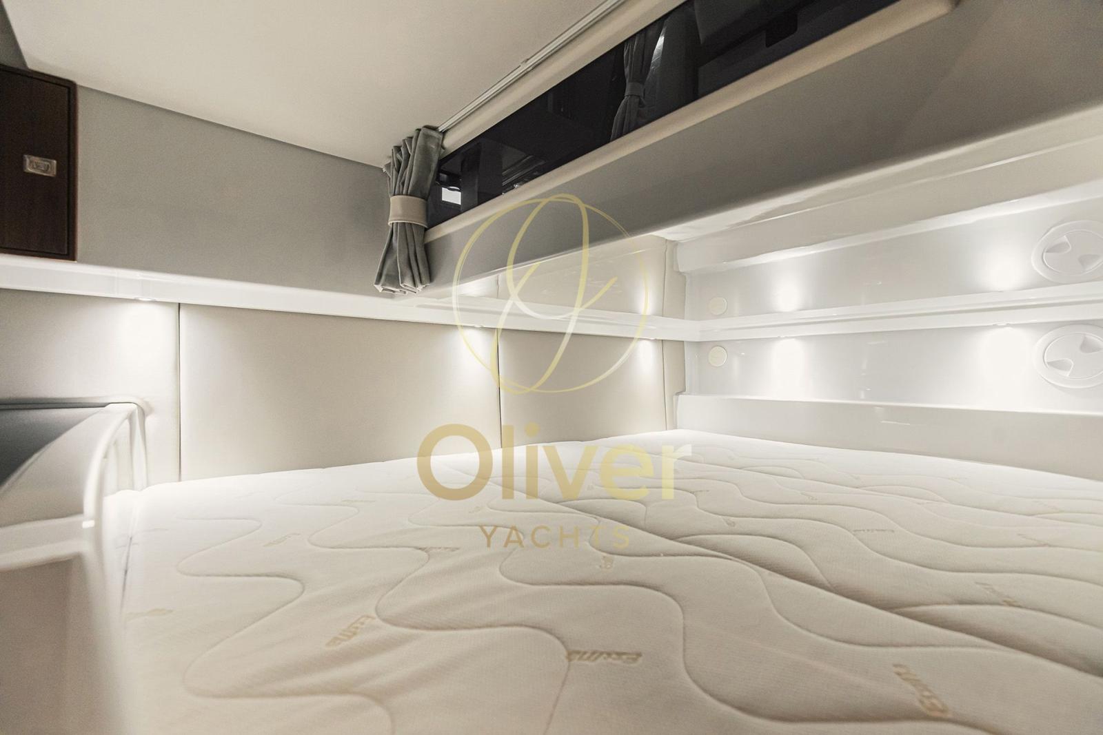 La cabine propriétaire du Dimensione 30 CA est un véritable havre de luxe et de détente. Le lit double spacieux offre un confort inégalé, tandis que les oreillers moelleux et les draps de haute qualité vous invitent au repos. Un éclairage doux et à intensité variable crée une atmosphère intime et relaxante.