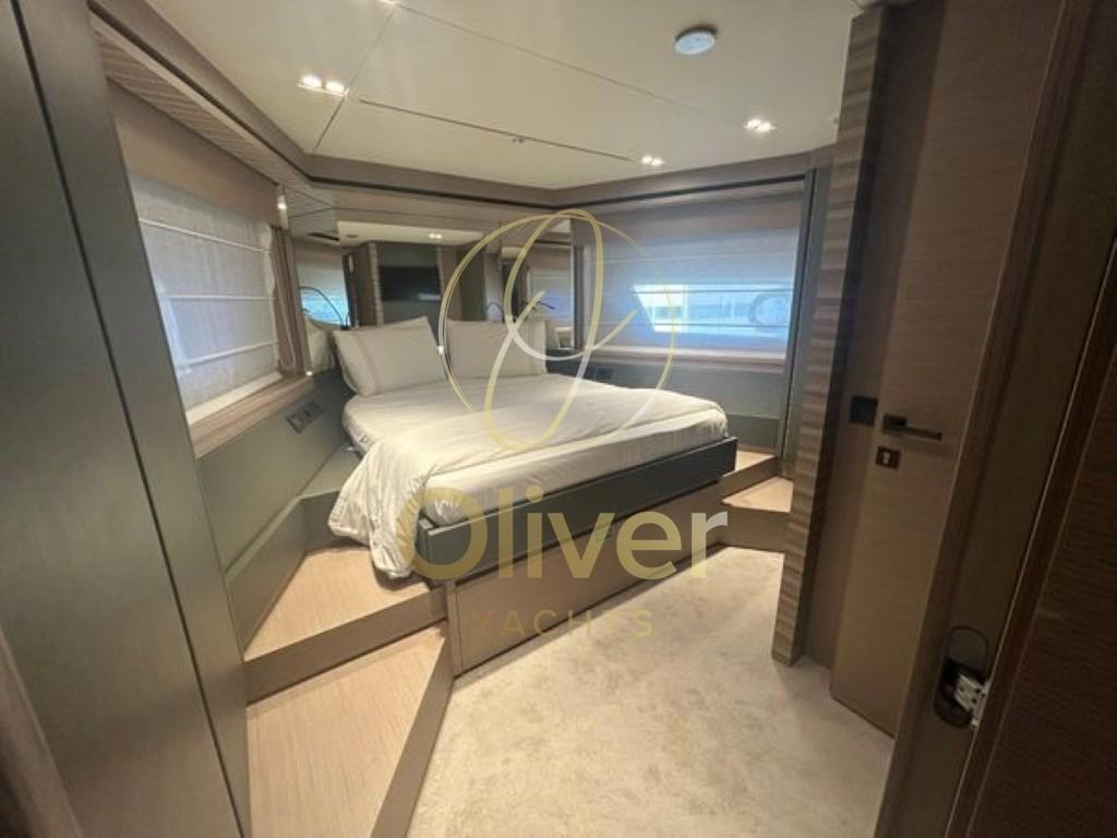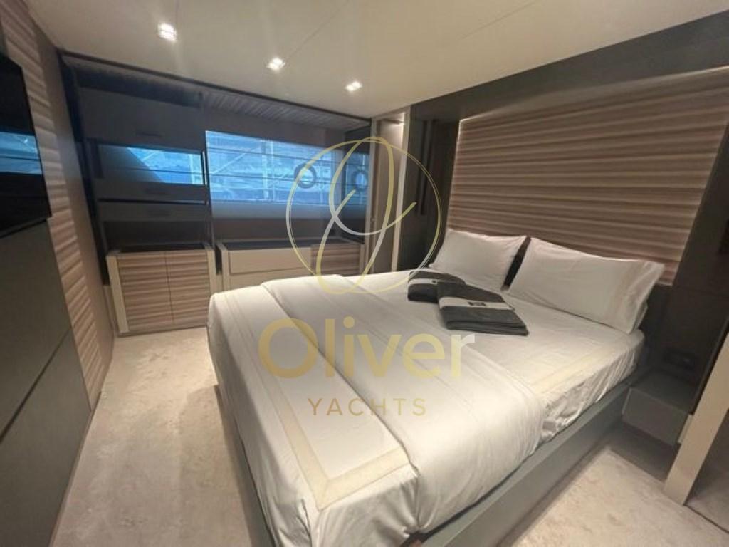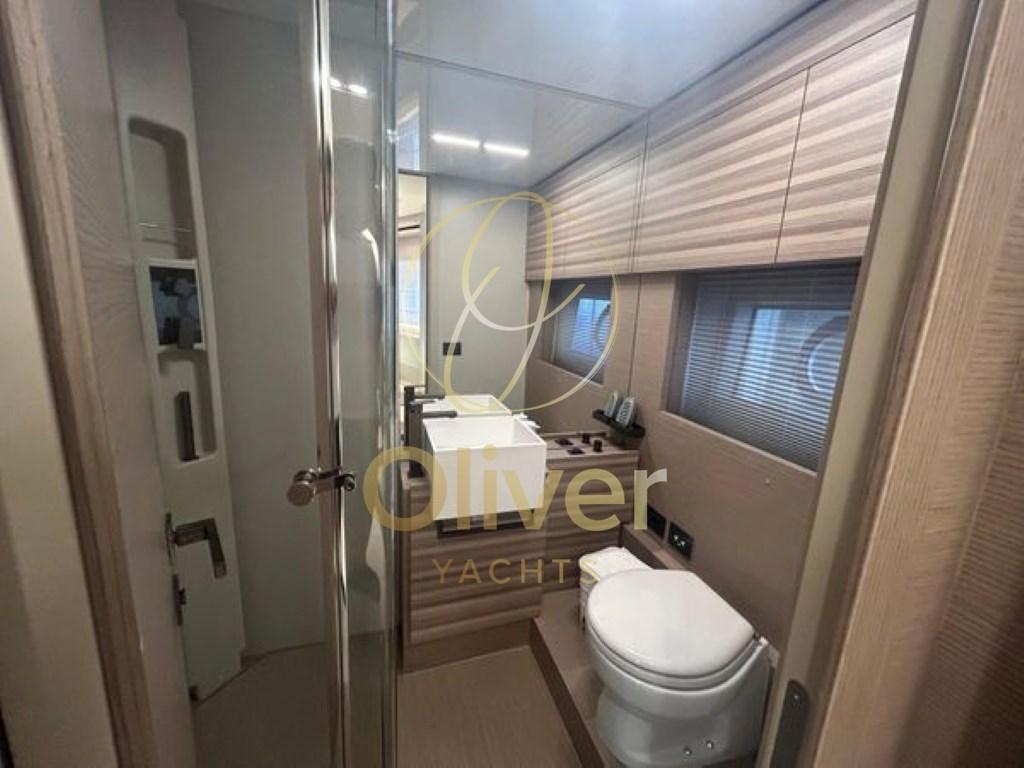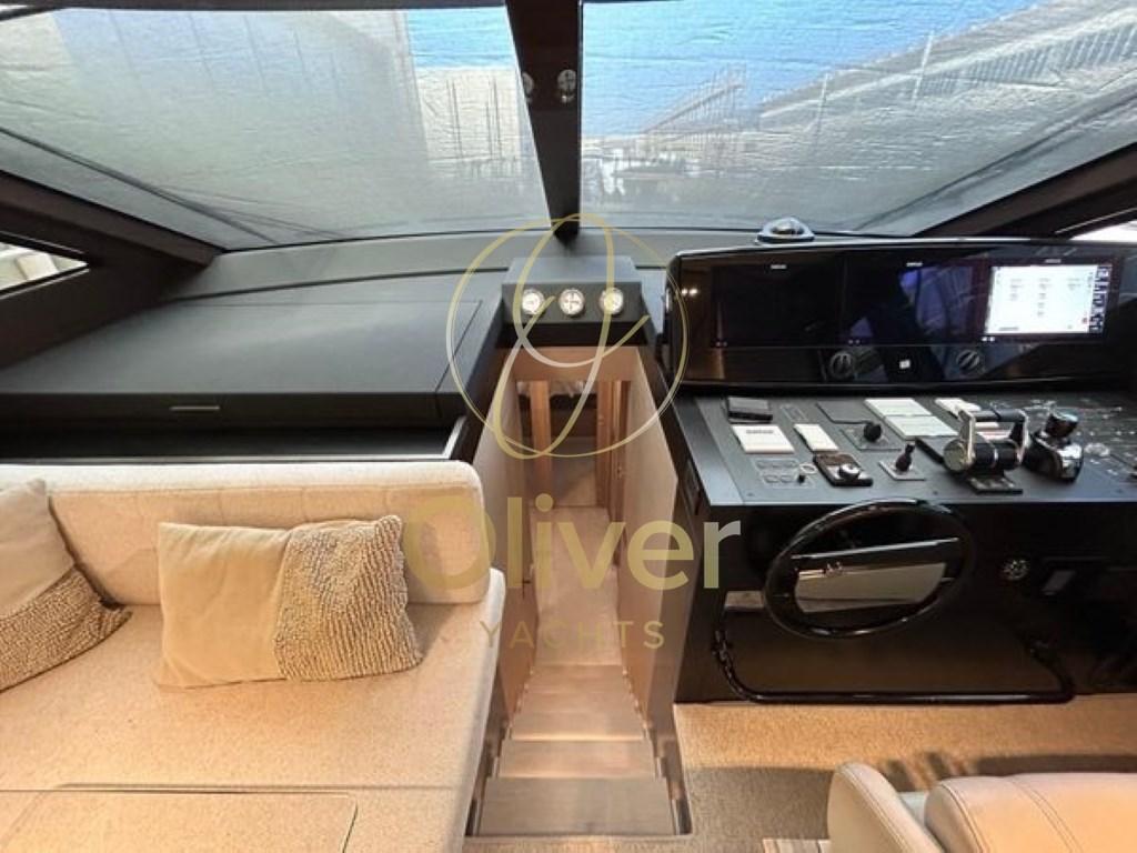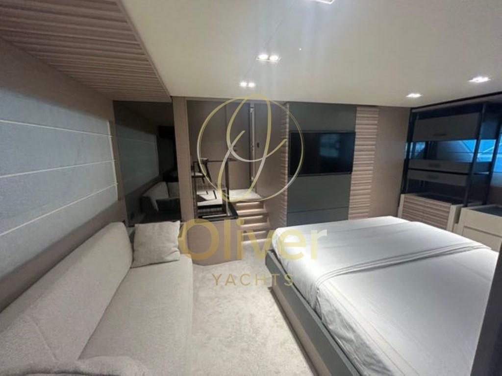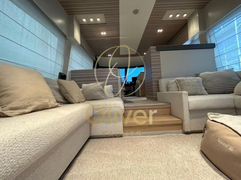 L’intérieur du Ferretti 670 se caractérise par une grande luminosité, grâce aux grandes fenêtres qui inondent chaque coin de lumière naturelle. L’aménagement modulaire offre une flexibilité maximale pour s’adapter aux besoins des clients, créant ainsi un espace accueillant et personnalisable.