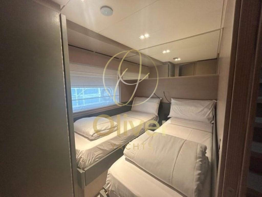 Alarme gaz, Alarme moteur, Alarme de pompe de cale, Ouverture du compartiment moteur électrique, Eau sous pression, Trim hydraulique, 8 Batteries, Taquets pliants, Passavant en teck, Douche de cockpit, Double barre à roue, Flaps hydrauliques, Garage à annexe, Hard top, Extincteur(s) fixe(s), Indicateurs de flaps, Lavage de chaine, Lavabo dans le cockpit, Éclairage de courtoisie, Spots sous-marins, Passerelle, Plateforme arrière, Pompe de cale automatique, Pompe de cale manuelle, Porte latérale, Cockpit en teck, Prise de quai, Connexion eau sous pression à quai, Guindeau électrique, Echelle de bain, Système de filtration des eaux usées, 2 Stabilisateurs (SEAKEEPER), table de cockpit, Annexe, Corne, T-Top, Pont en teck, Winch électrique avant.