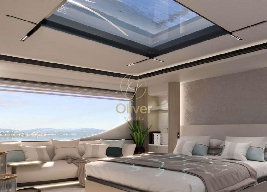 À l’intérieur, le Majesty 111 est une véritable retraite de luxe. Les chambres ont été conçues pour offrir un maximum de confort et de détente, avec des matériaux nobles, des finitions impeccables et une attention aux détails qui se perçoit dans tous les coins. Les cabines spacieuses et lumineuses sont décorées avec goût et offrent une expérience de sommeil reposante. La suite du propriétaire est un véritable appartement sur la mer, avec un aménagement ouvert et une grande fenêtre qui offre une vue panoramique sur l’océan.