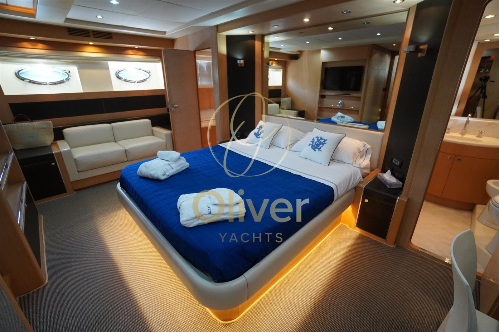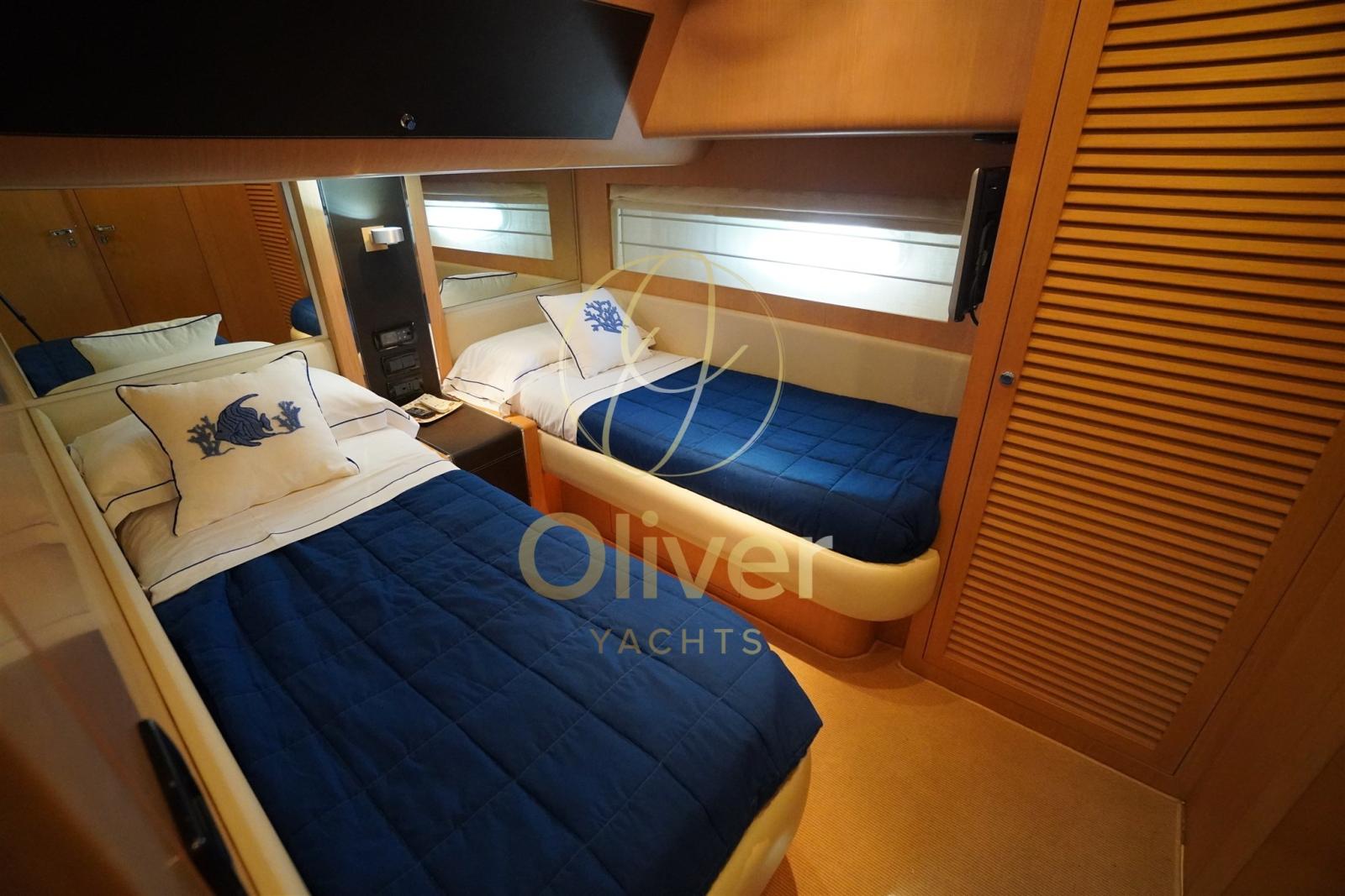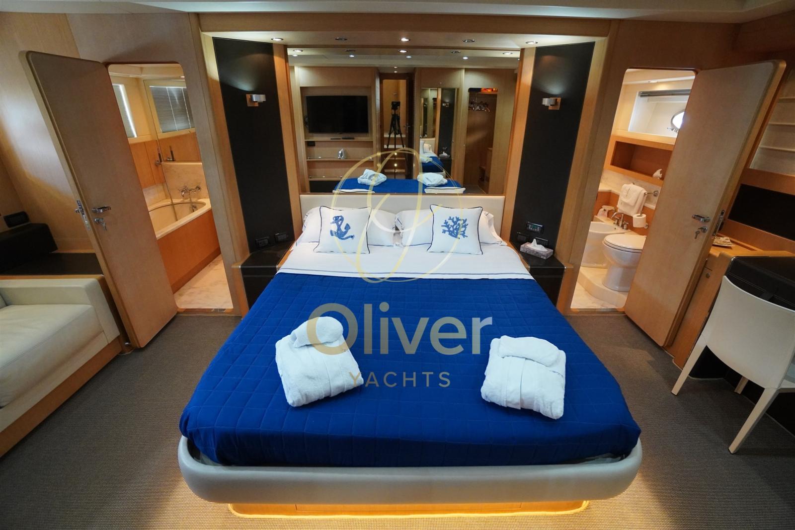 Située au centre, la cabine du propriétaire est un véritable refuge de luxe. Équipé d’un lit king-size, d’une salle de bain privée avec baignoire et douche, d’un dressing et d’un espace détente, il offre un confort et une intimité maximaux. Les deux cabines d’invités, situées en face de la cabine du propriétaire, sont équipées de lits simples, de salle de bain privée et d’un walk-in. Ils offrent un environnement chaleureux et confortable pour les invités. La cabine VIP est située à l’avant, équipée d’un lit king size, d’une grande salle de bain et de grandes armoires.