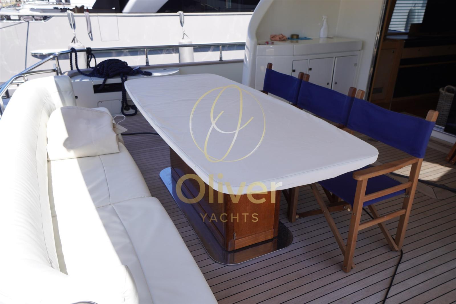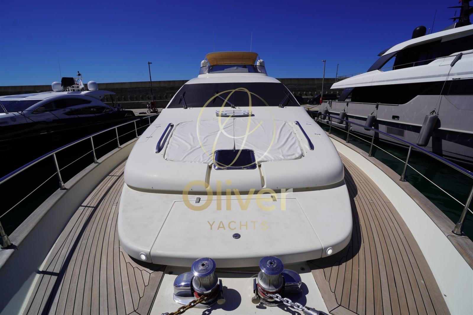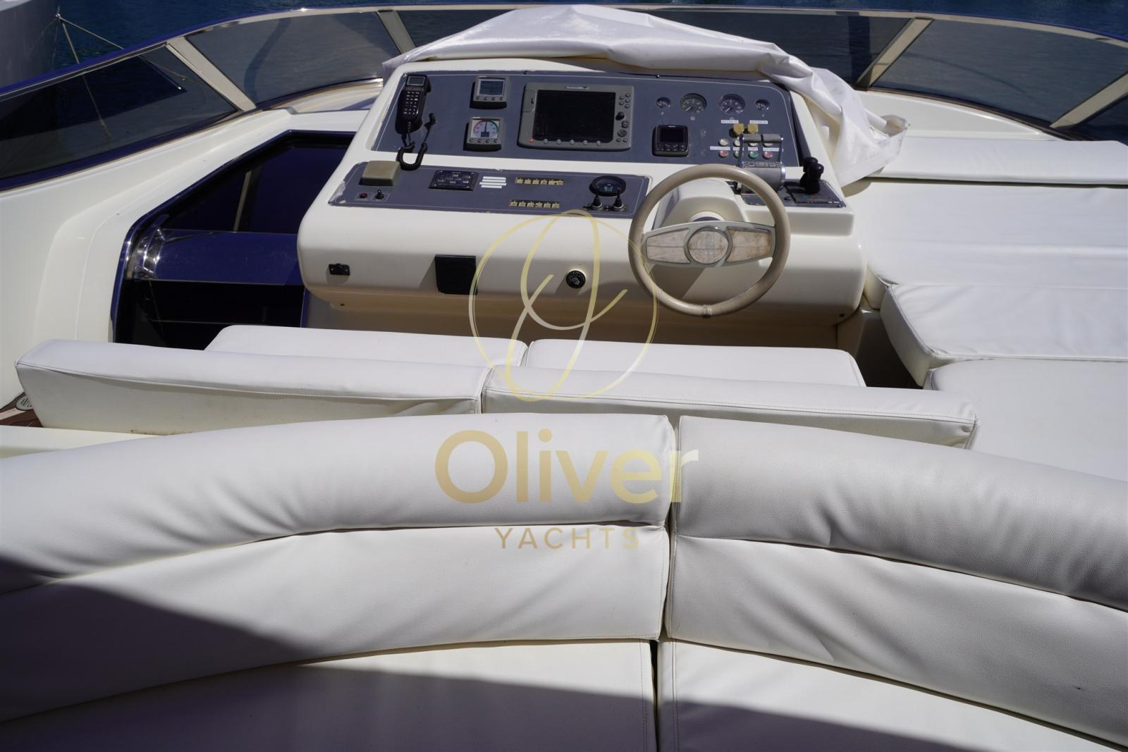 Alarme gaz, Alarme moteur, Alarme de pompe de cale, 2 Ancre, Eau sous pression, Trim hydraulique, Système de vidange, Passavant en teck, Double barre à roue, Phares fixes arrière, Phare de poursuite, Flaps hydrauliques, Grue de flybridge, Hard top, Extincteur(s) fixe(s), Indicateurs de flaps, Lavage de chaine, Lavabo dans le cockpit, Éclairage de courtoisie, Spots sous-marins, Passerelle, Plateforme arrière, Pompe de cale automatique, Pompe de cale manuelle, Porte latérale, Porte latérale, Cockpit en teck, Prise de quai, Connexion eau sous pression à quai, Répétiteur électronique, Rollbar, Guindeau électrique, Echelle de bain, Selles pour Annexe, Système de filtration des eaux usées, 2 Stabilisateurs (ARG MITSUBISHI Gyro), table de cockpit, Annexe, Filières avec sortie latèrale, Corne, T-Top, Pont en teck, Winch électrique arrière, Winch électrique avant.