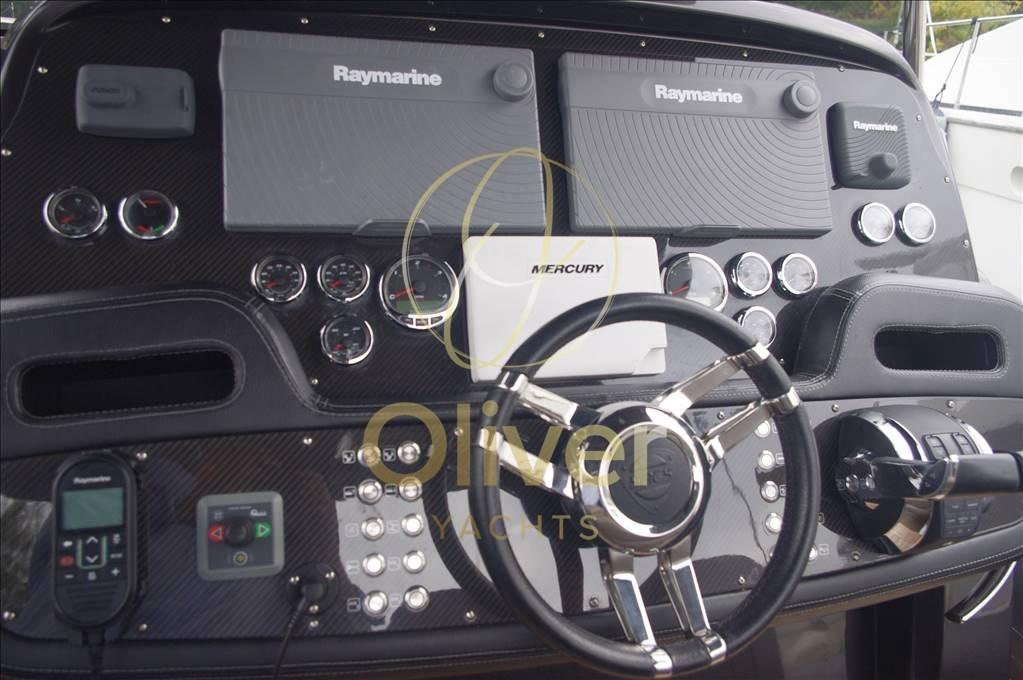Tous les RAYMARINE il y a deux écrans tactiles hybrides de 13 pouces dans lesquels toutes les informations sont rapportées, les journaux, l’échosondeur, la boussole, le gps, le cartoplotter, le radar, le pilote automatique, les instruments météorologiques, l’angle du gouvernail. La plaque de cuisson est complétée par un ordinateur de bord qui recueille toutes les informations des moteurs et de la domotique.