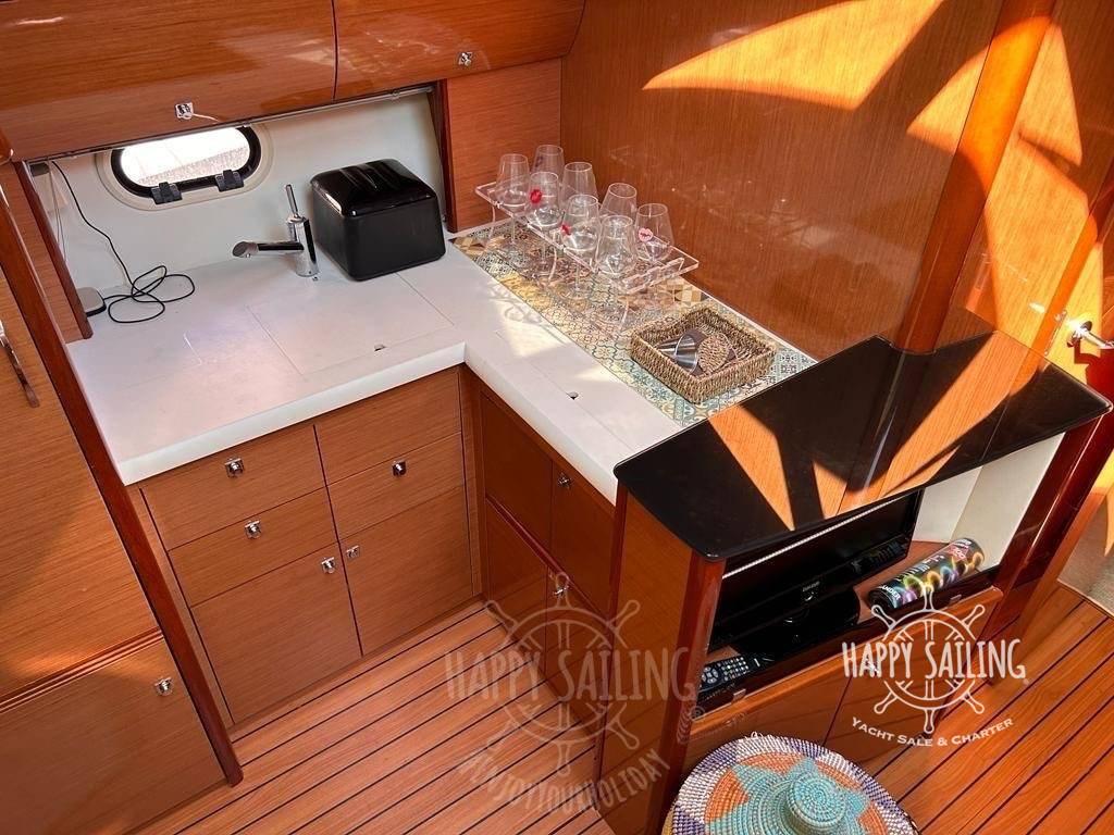 Bateau maintenu en excellent état avec des travaux d’entretien réguliers tant sur le plan technique qu’esthétique, l’entretien, les moteurs IPS et les embrayages mis à jour avec les factures volvo penta. Bateau de croisière avec un excellent espace et des qualités de navigation optimales, faible consommation grâce au moteur IPS500. Aménagement 2 cabines et 2 salles de bain