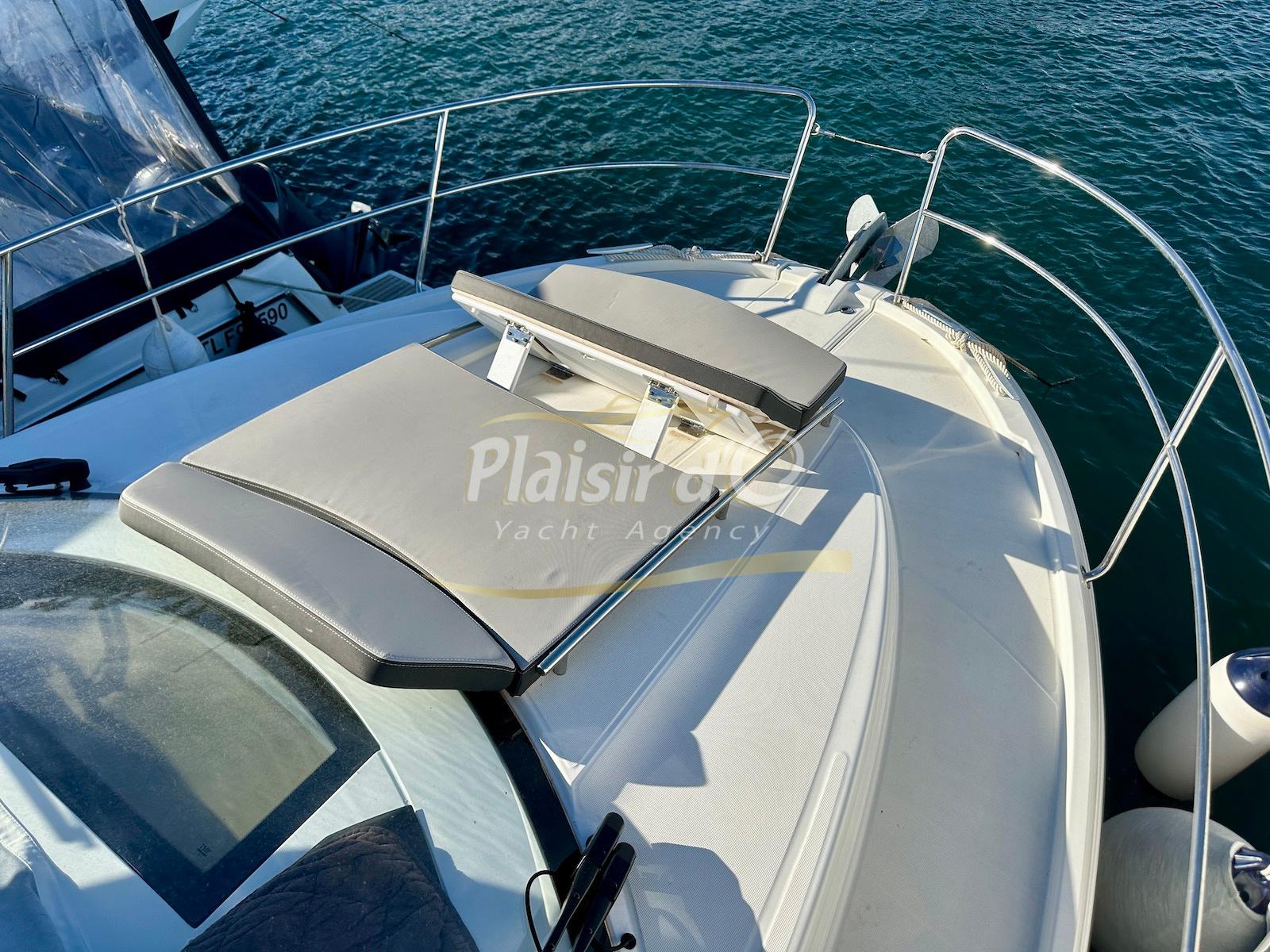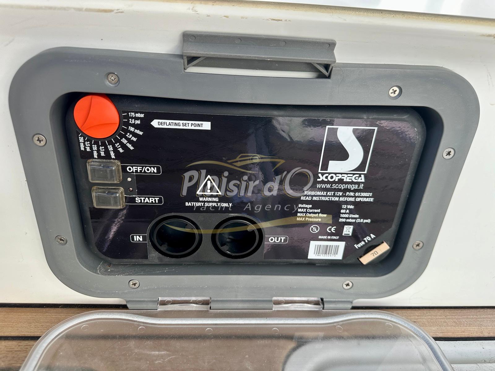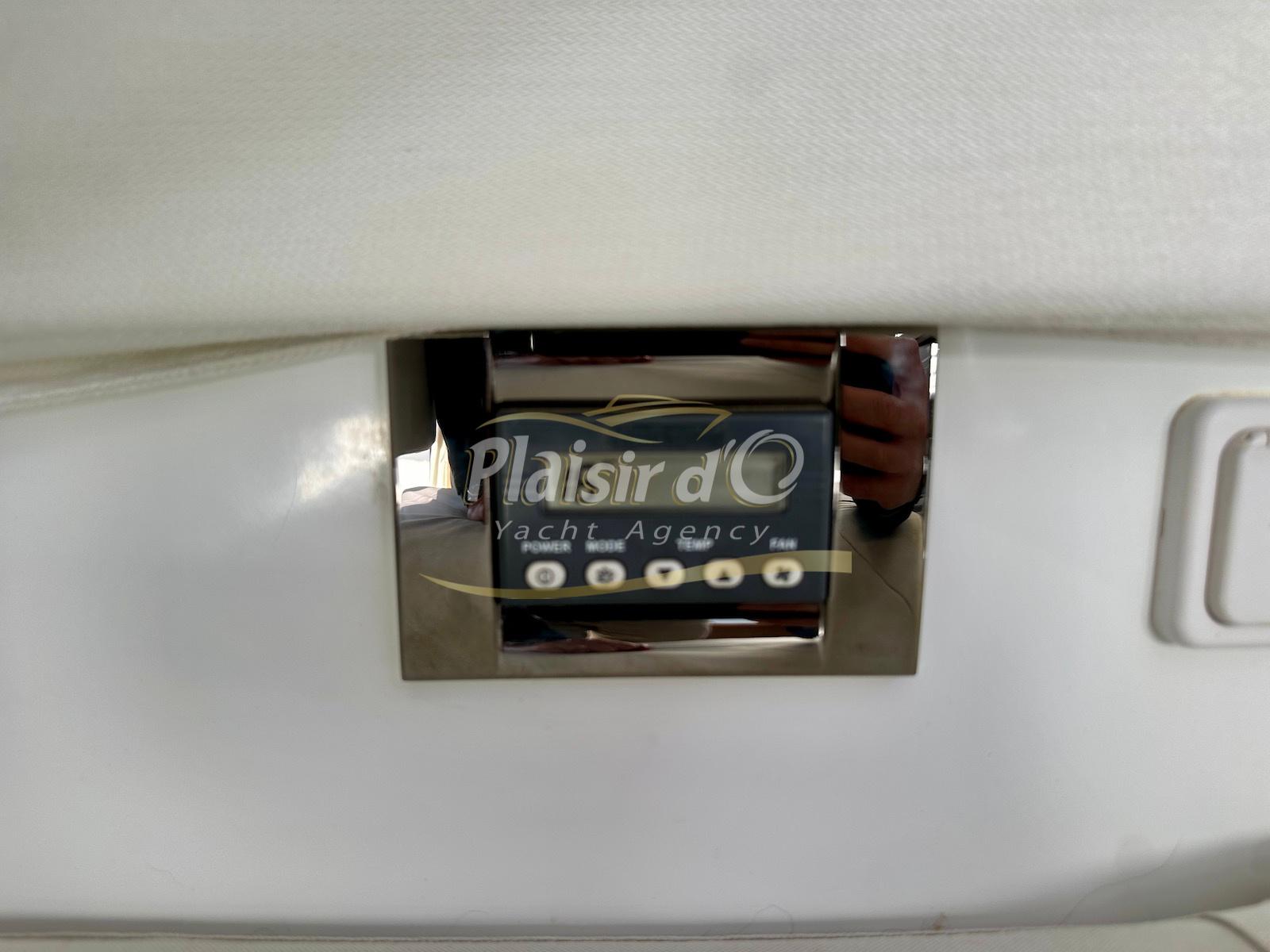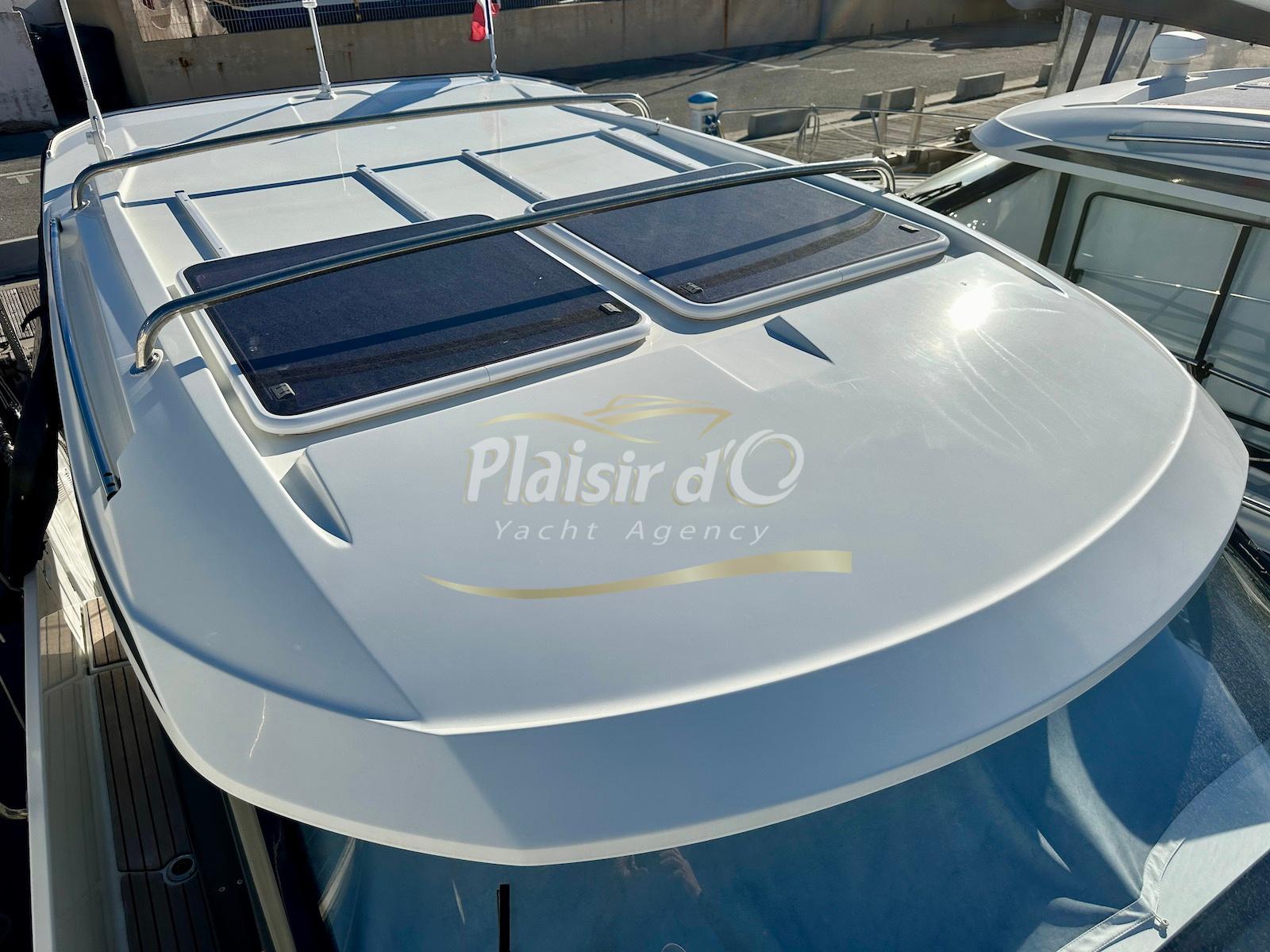 Full options : version offshore avec gros réservoir et grosse motorisation 2 x 200cv Suzuki en commandes électriques, climatisation revserible, cockpit teck, taud de camping, taud de soleil microperforé, compresseur d’air pour annexe intégré, micro ondes, frigo, WC marin, chauffe eau, chargeur, circuit 220v, guindeau électrique, GPS, VHF, carré convertible, bain de soleil avant et arrière, table de cockpit…
