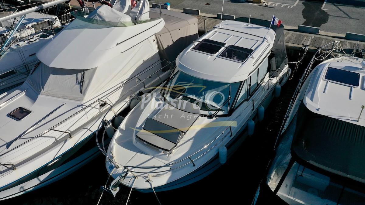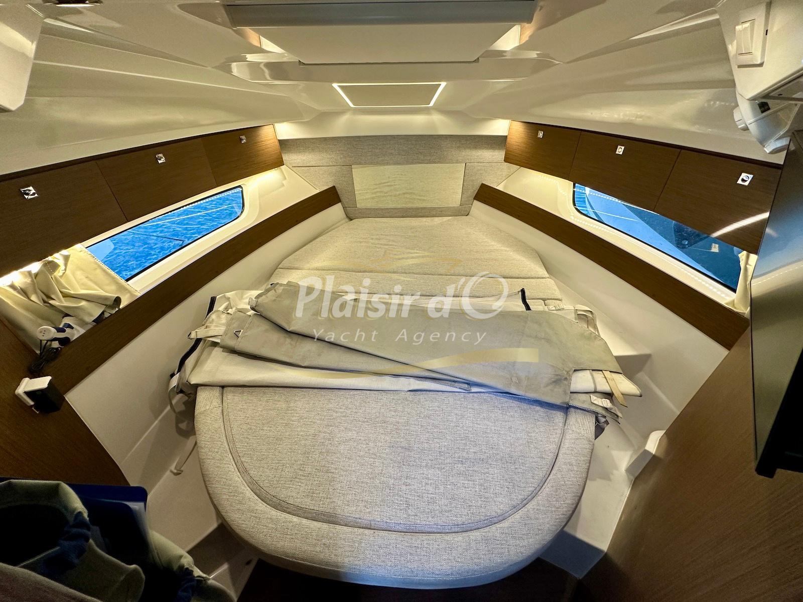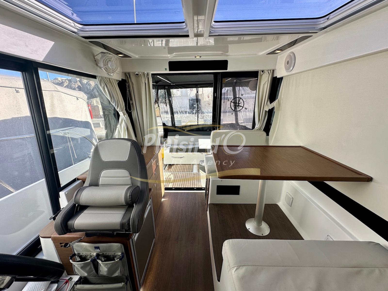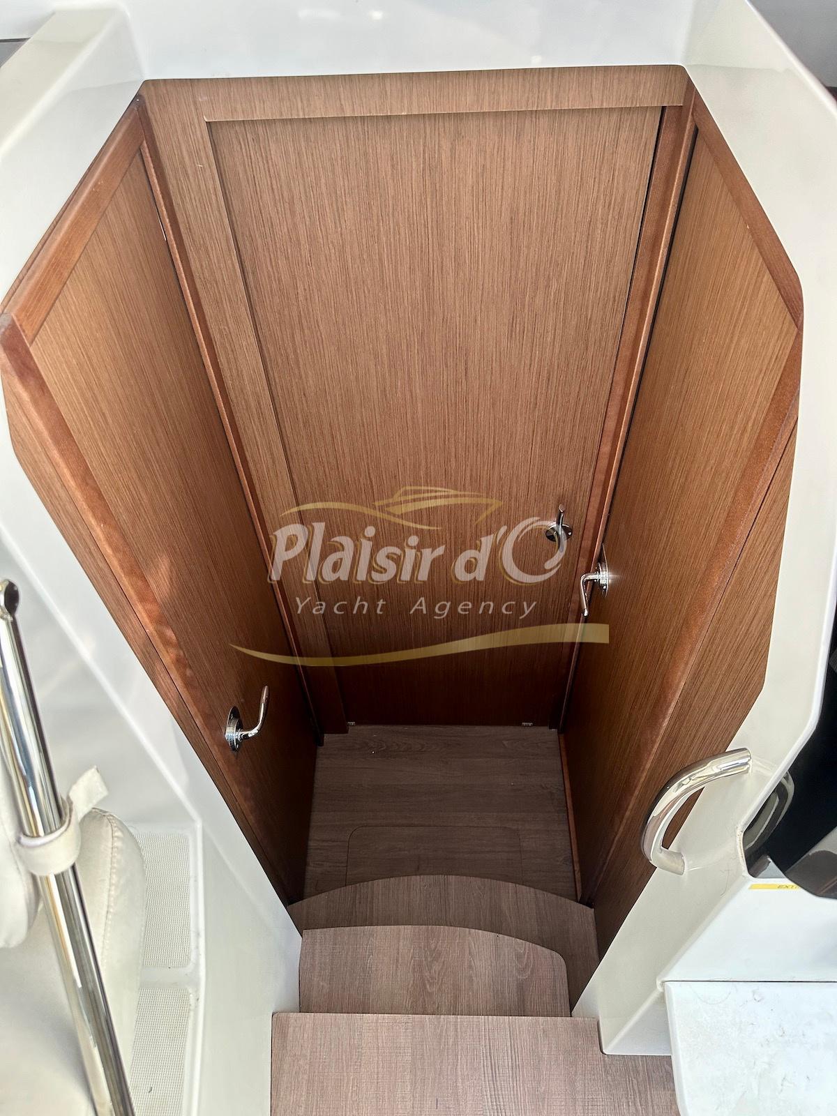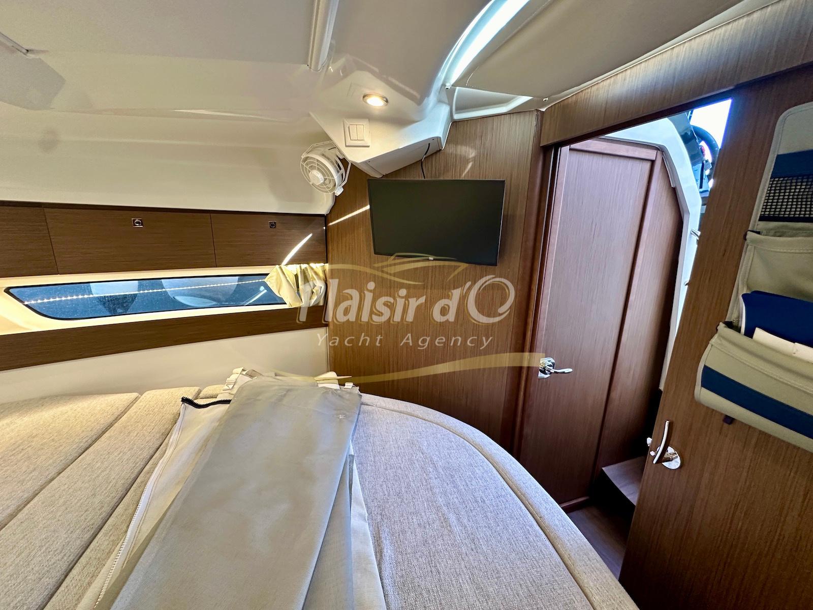 Full options : version offshore avec gros réservoir et grosse motorisation 2 x 200cv Suzuki en commandes électriques, climatisation revserible, cockpit teck, taud de camping, taud de soleil microperforé, compresseur d’air pour annexe intégré, micro ondes, frigo, WC marin, chauffe eau, chargeur, circuit 220v, guindeau électrique, GPS, VHF, carré convertible, bain de soleil avant et arrière, table de cockpit…