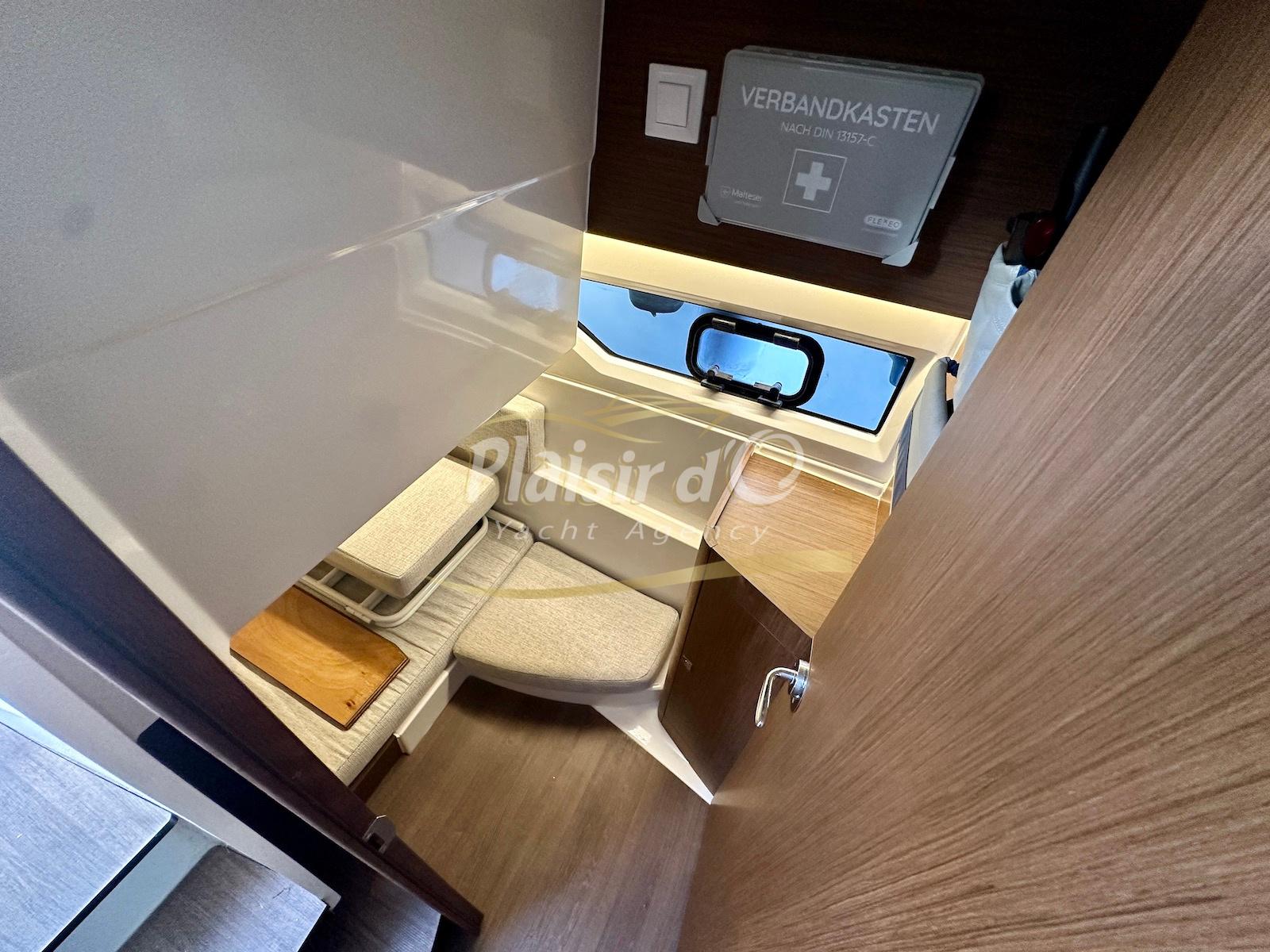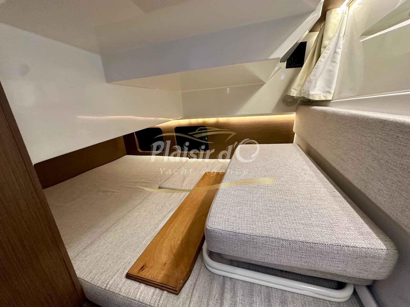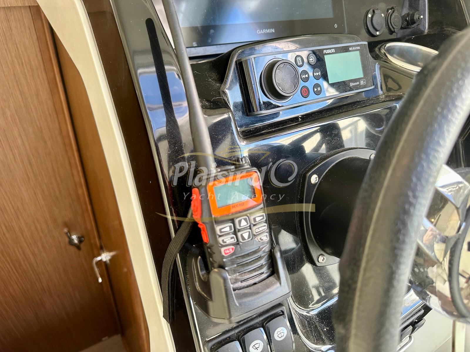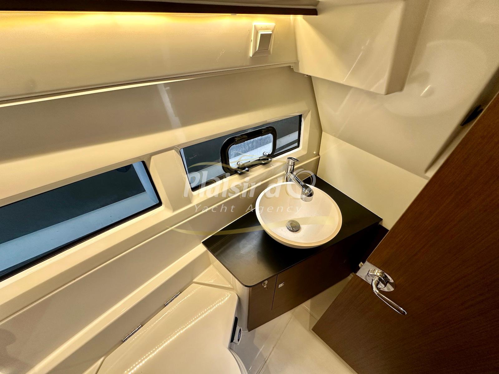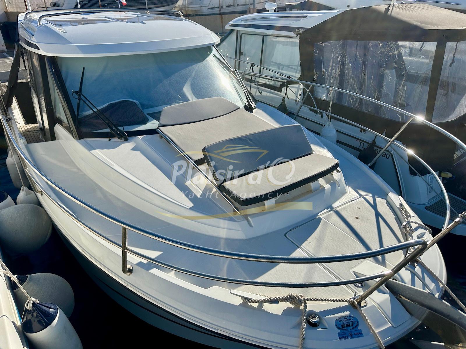 Full options : version offshore avec gros réservoir et grosse motorisation 2 x 200cv Suzuki en commandes électriques, climatisation revserible, cockpit teck, taud de camping, taud de soleil microperforé, compresseur d’air pour annexe intégré, micro ondes, frigo, WC marin, chauffe eau, chargeur, circuit 220v, guindeau électrique, GPS, VHF, carré convertible, bain de soleil avant et arrière, table de cockpit…