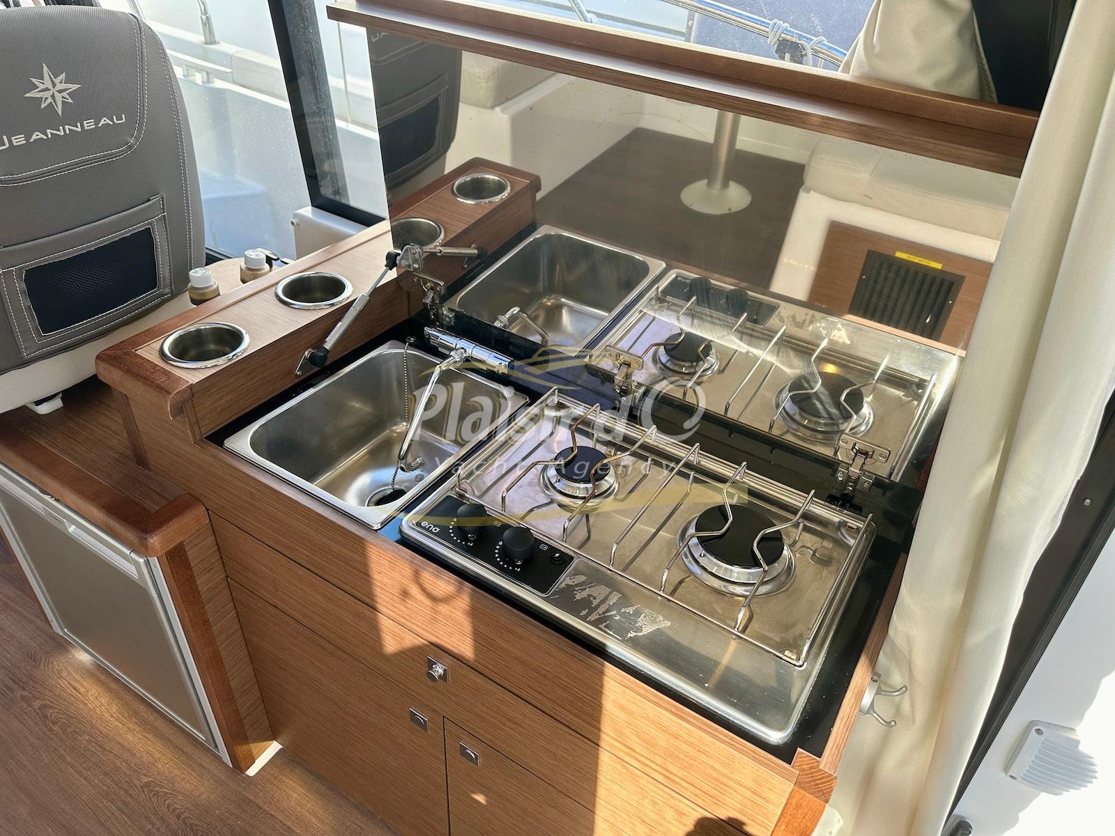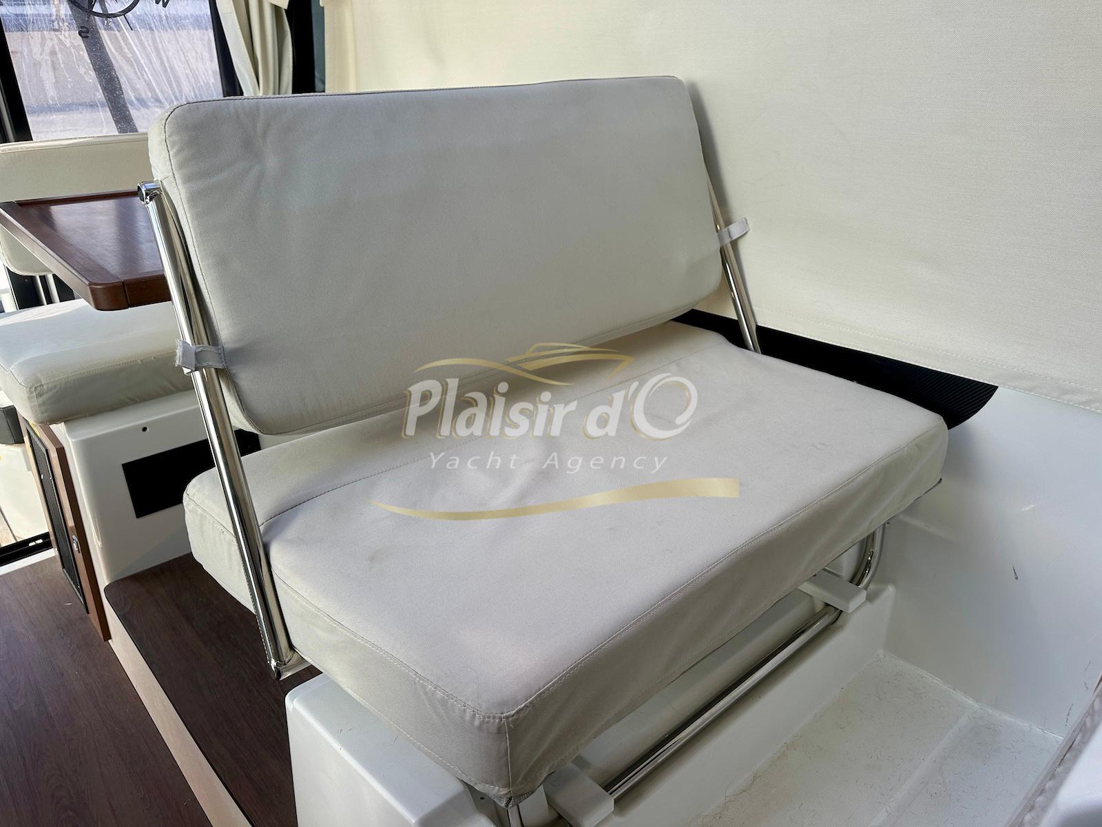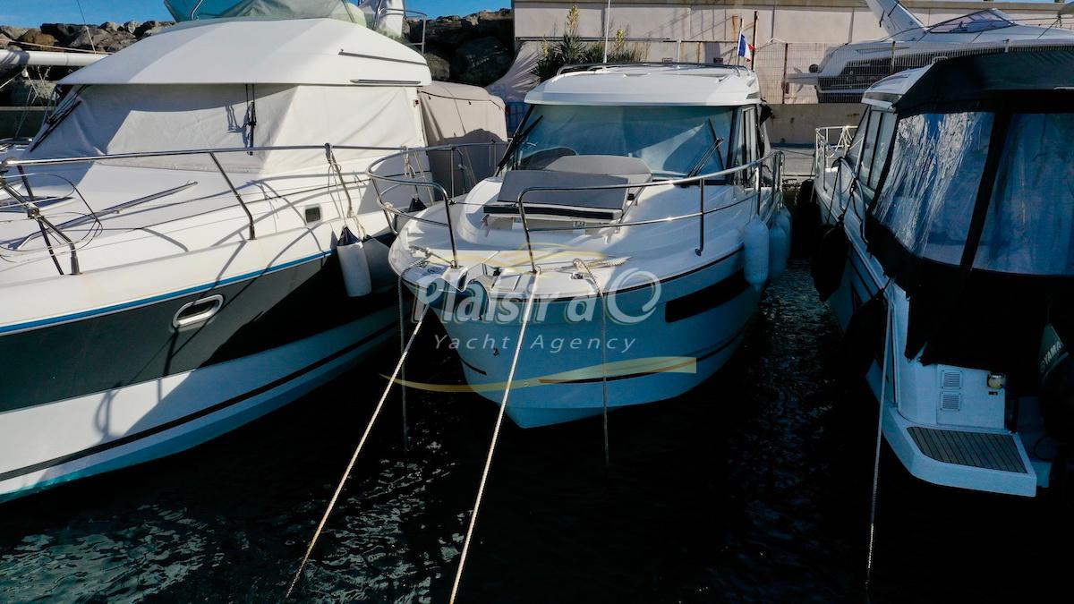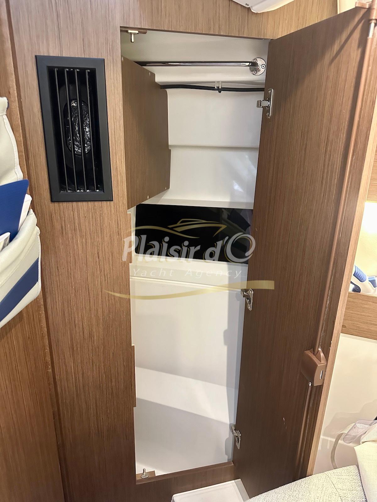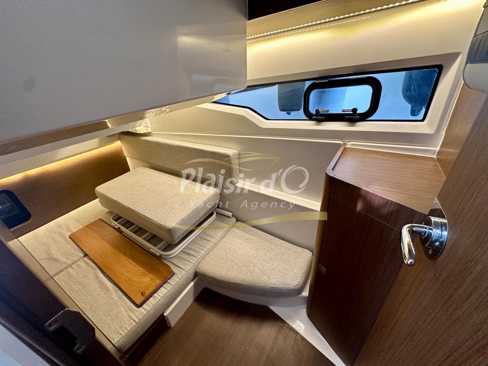 Full options : version offshore avec gros réservoir et grosse motorisation 2 x 200cv Suzuki en commandes électriques, climatisation revserible, cockpit teck, taud de camping, taud de soleil microperforé, compresseur d’air pour annexe intégré, micro ondes, frigo, WC marin, chauffe eau, chargeur, circuit 220v, guindeau électrique, GPS, VHF, carré convertible, bain de soleil avant et arrière, table de cockpit…