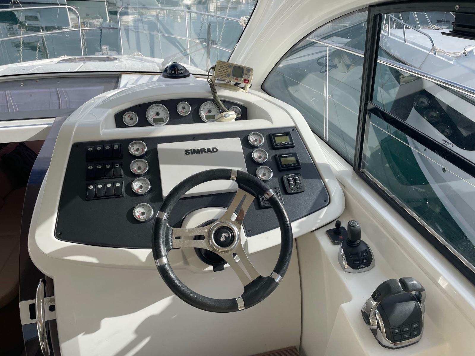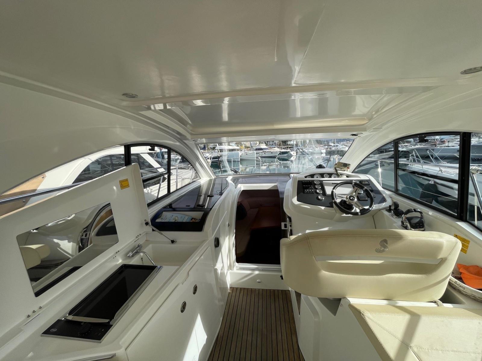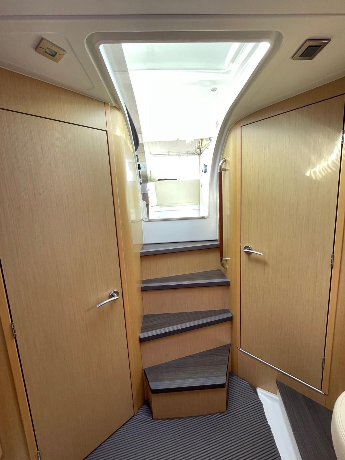 Son volume intérieur est surprenant. Il bénéficie de deux espaces de couchages indépendants, ainsi que de tous les équipements nécessaires aux croisières en famille ou entre amis. Boiserie clair et sellerie crème signent une ambiance contemporaine et chaleureuse à bord.