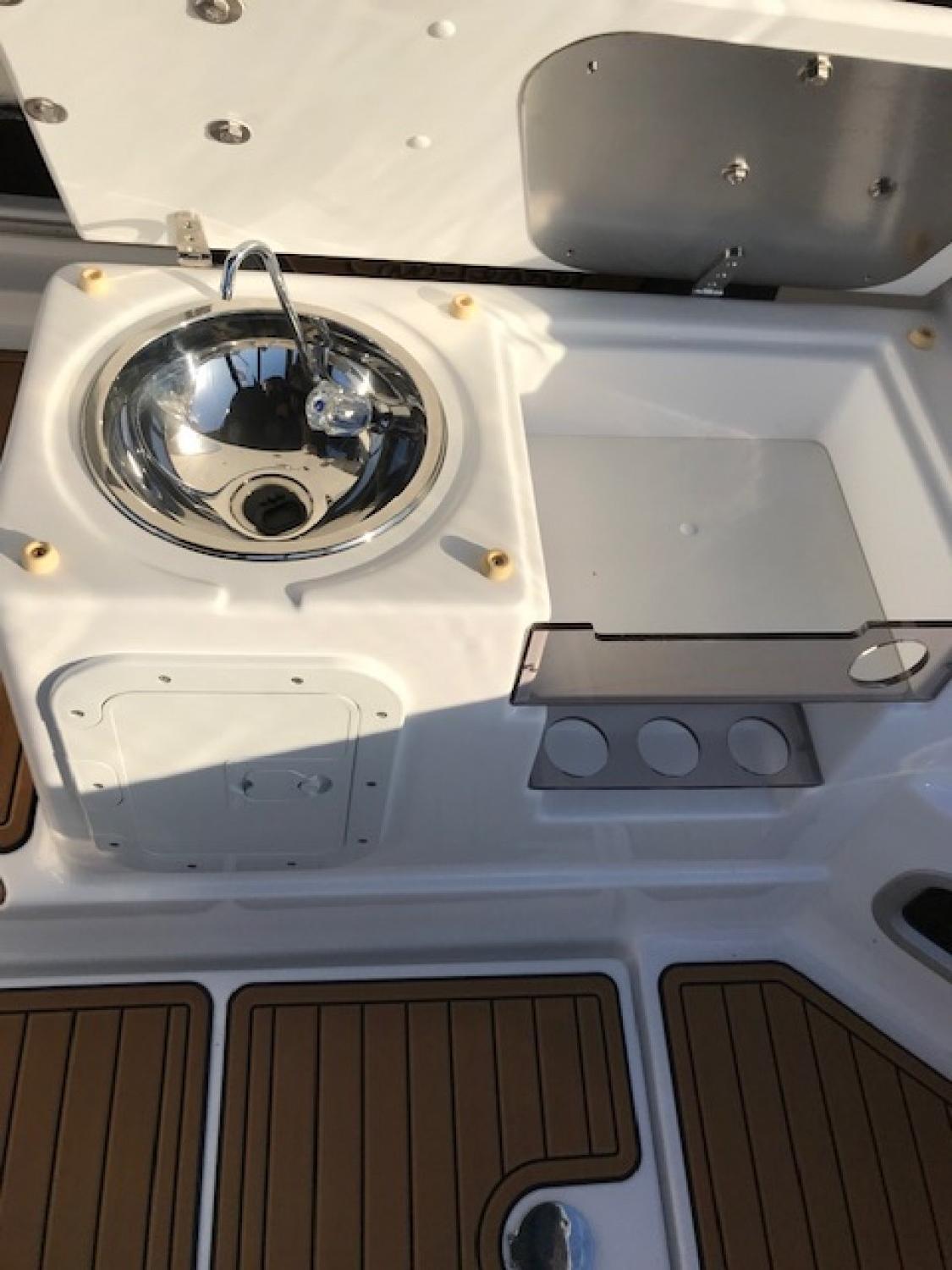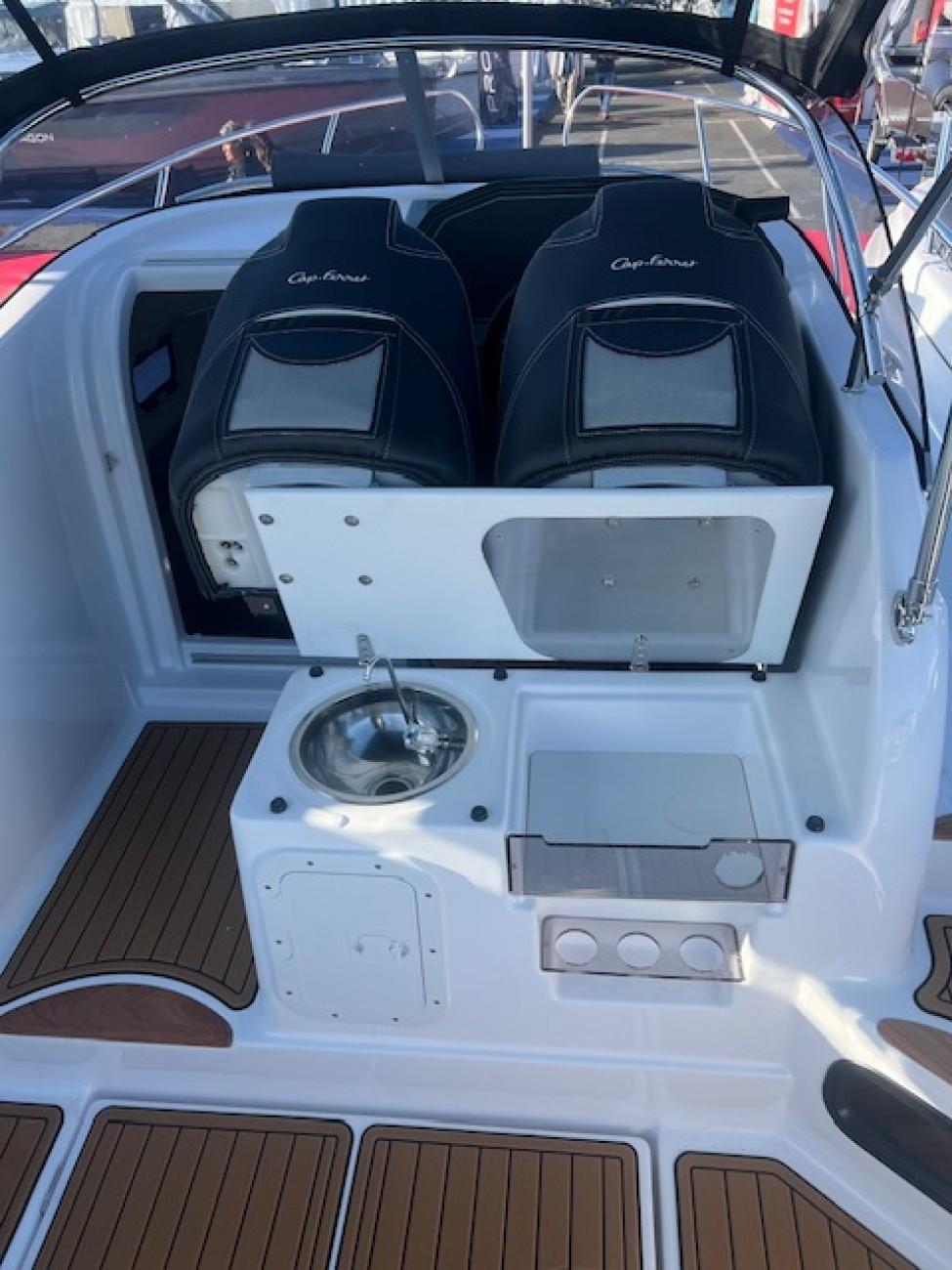 BAIN DE SOLEIL AVANT/BAIN DE SOLEIL ARRIERE/SIEGES PILOTE ET CO-PILOTE BOLSTER/DOUCHETTE DE COCKPIT AVEC RESERVOIR EAU 70L/RESERVOIR CARBURANT 186L/DIRECTION HYDRAULIQUE/CUISINE EXTERIEURE AVEC EVIER ET RECHAUD/TABLE DE COCKPIT AMOVIBLE/COFFRES DE RANGEMENT/4 COUCHETTES/HUBLOTS/WC CHIMIQUE
