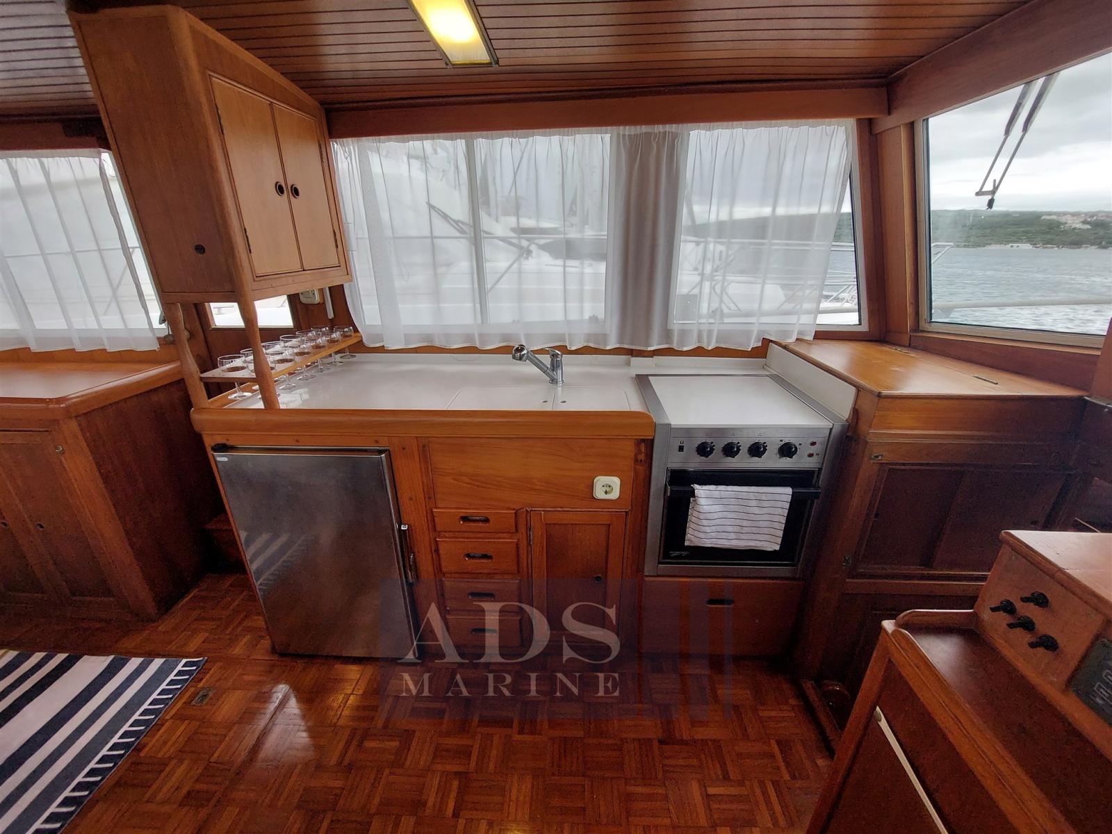 Cuisine : évier double, réfrigérateur Frigoboat, cuisinière avec 3 brûleurs Forceio