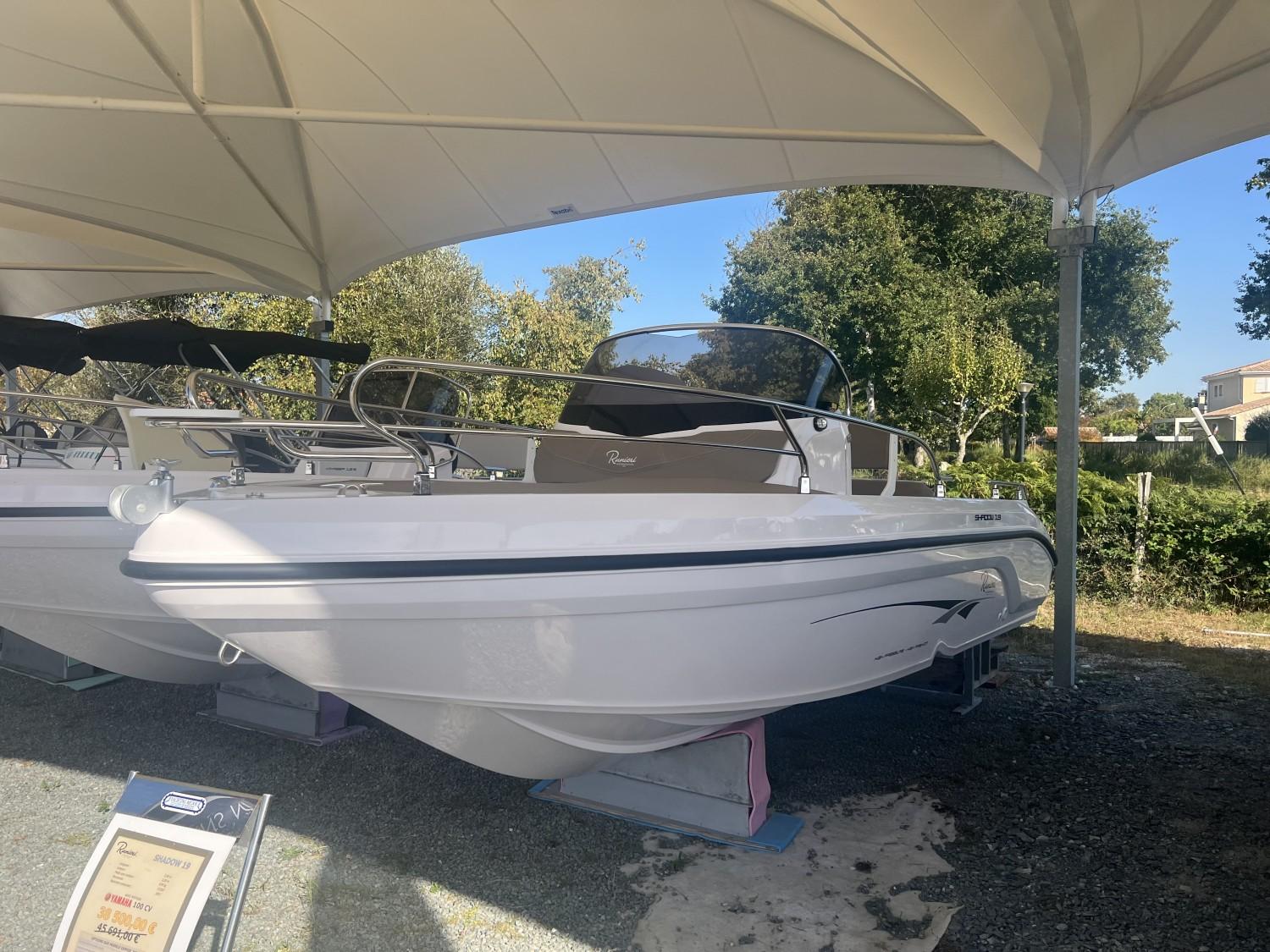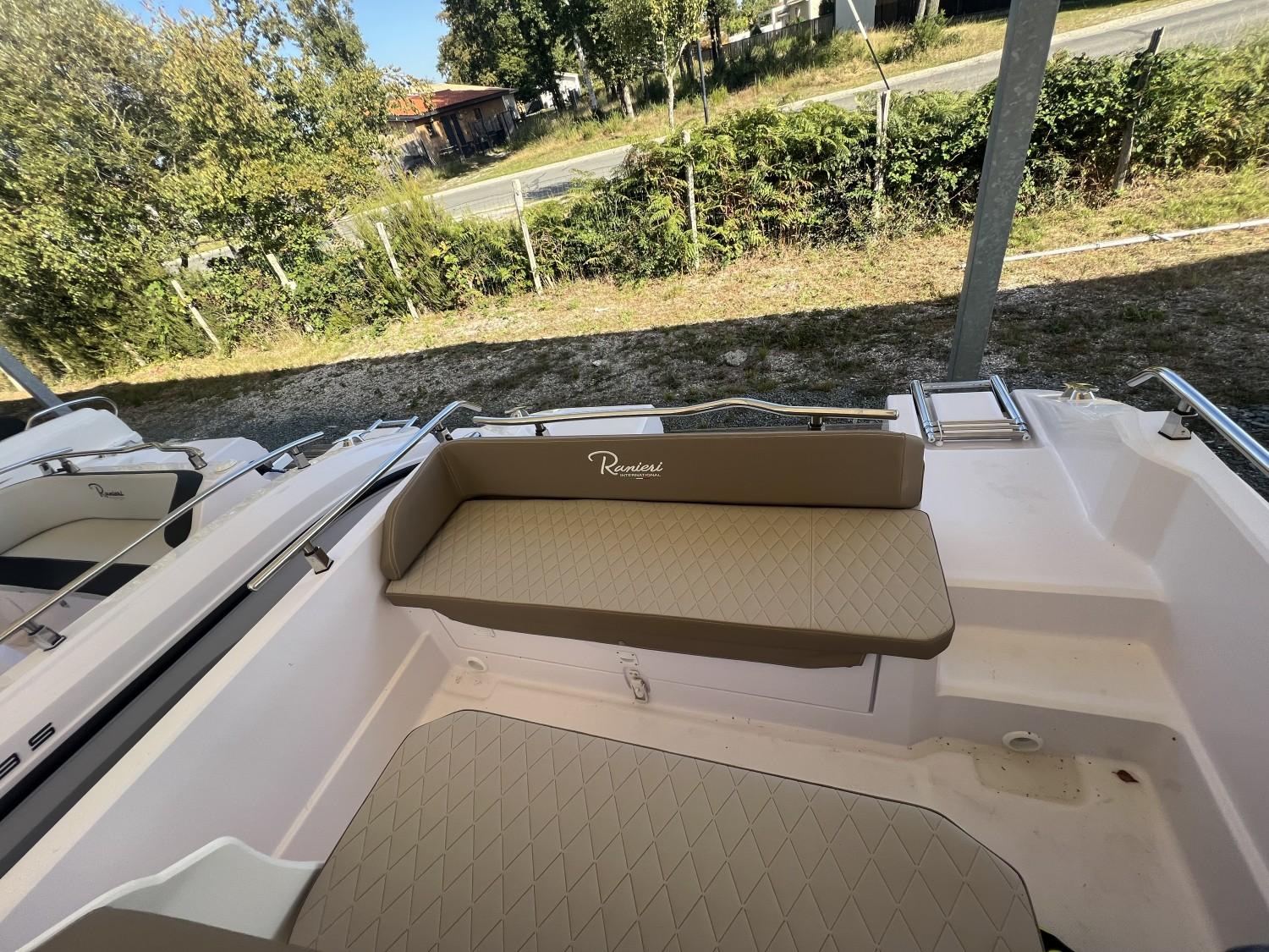 échelle de bain inox, pompe de cale automatique, carène à step, feux de navigation, réservoir carburant 105L