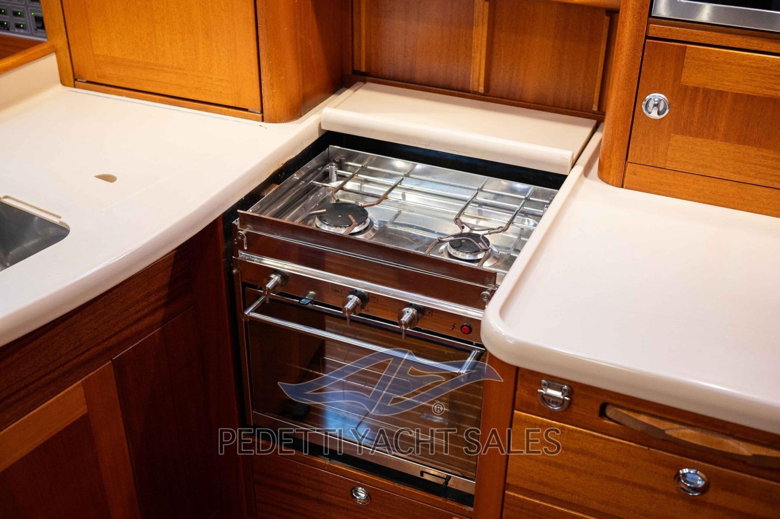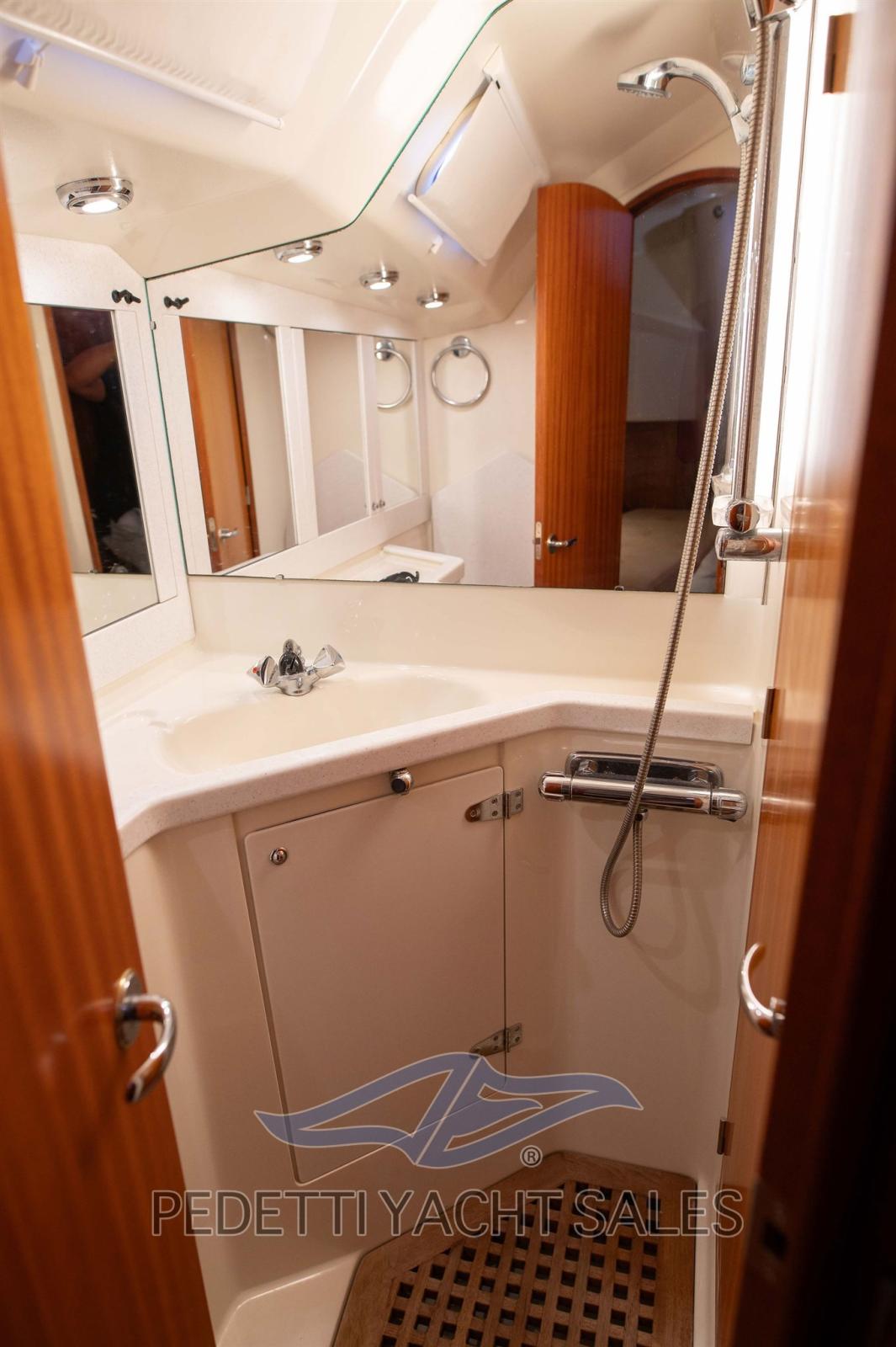 Ancre (Ultra 30 Kg con 80 mts catena 12mm), Eau sous pression, 5 Batteries, Passavant en teck, Douche de cockpit, Extincteur(s) fixe(s) (sala motore), Passerelle (manuale), Plateforme arrière (apertura elettrica), Pompe de cale automatique, Cockpit en teck, Prise de quai, Guindeau électrique (Lewmar), Gréement monotoron, Echelle de bain, table de cockpit, Annexe (Zodiac 2,60 chiglia rigida con 6hp Yamaha), 2 Winch (Andersen manuali), 4 Winch électrique (Andersen).