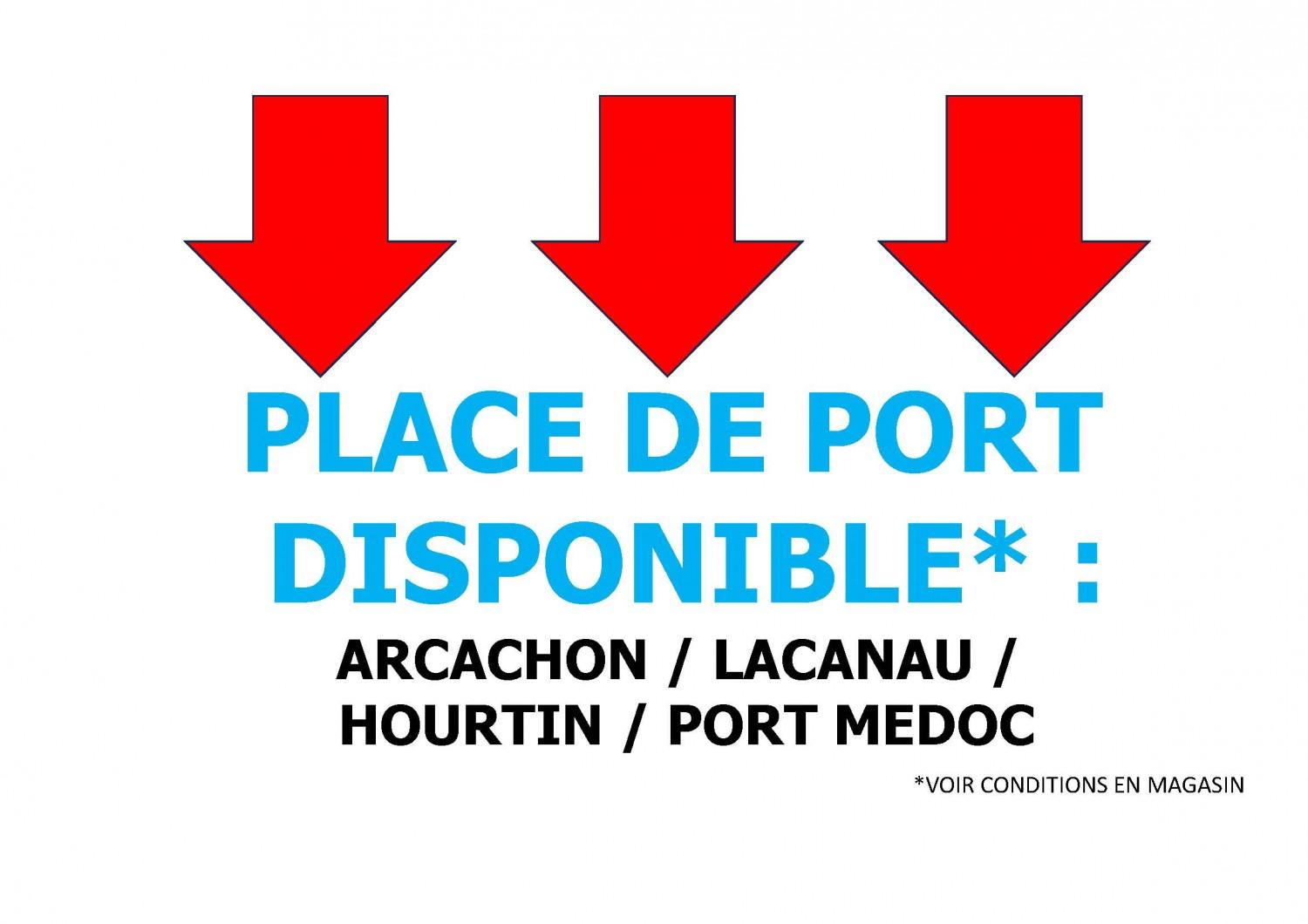PLACE DE PORT DISPONIBLE AU PORT : D'ARCACHON / LACANAU / HOURTIN / LE VERDON