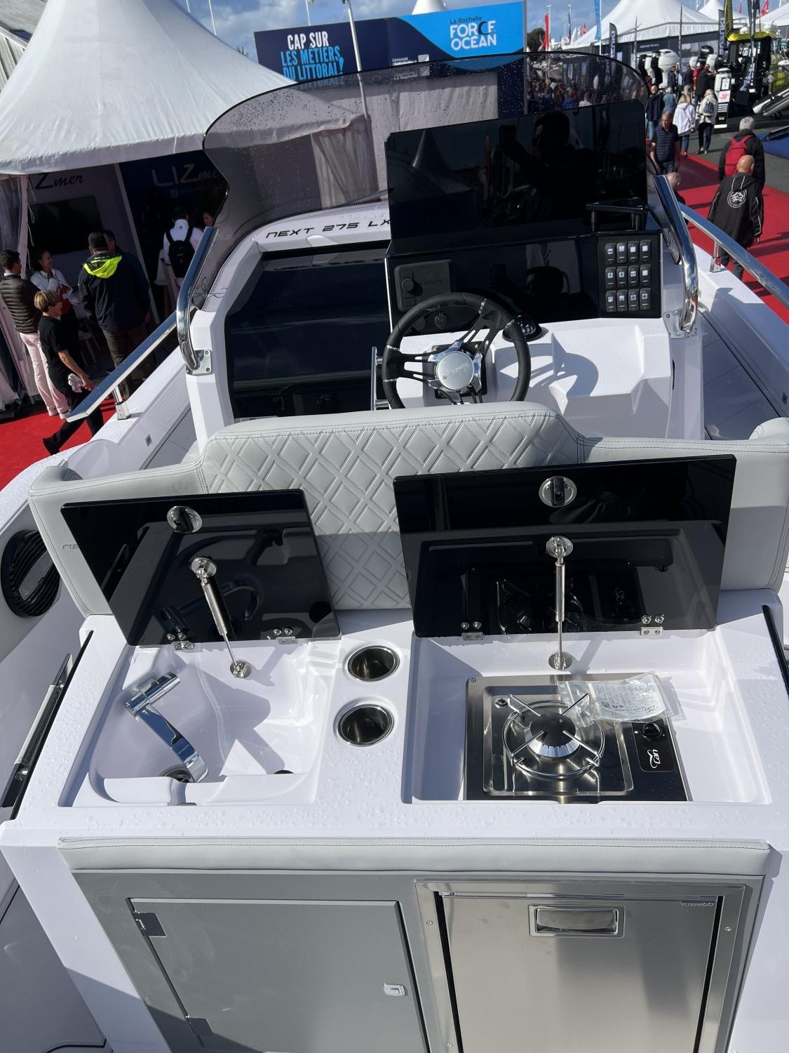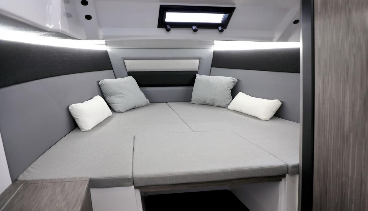 Seadeck dans cockpit, Compas, Console glass bridge, Klaxon, Coussin de cabine, Coussin bain de soleil avant, Direction hydraulique,