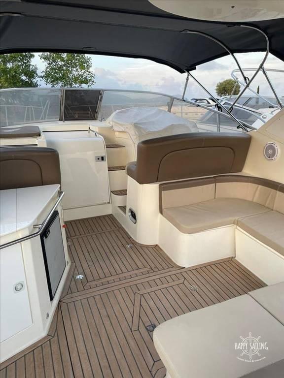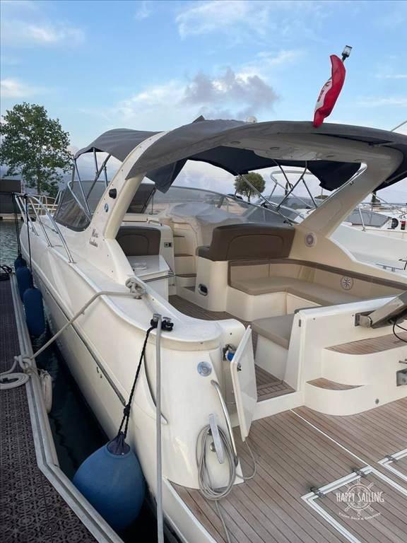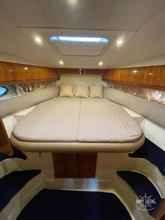 Bateau entièrement réaménagé en 2022, tant au niveau des motorisations (toutes officielles Volvo Penta, toujours sous garantie), qu’esthétiquement avec une sellerie neuve, teck, auvents.