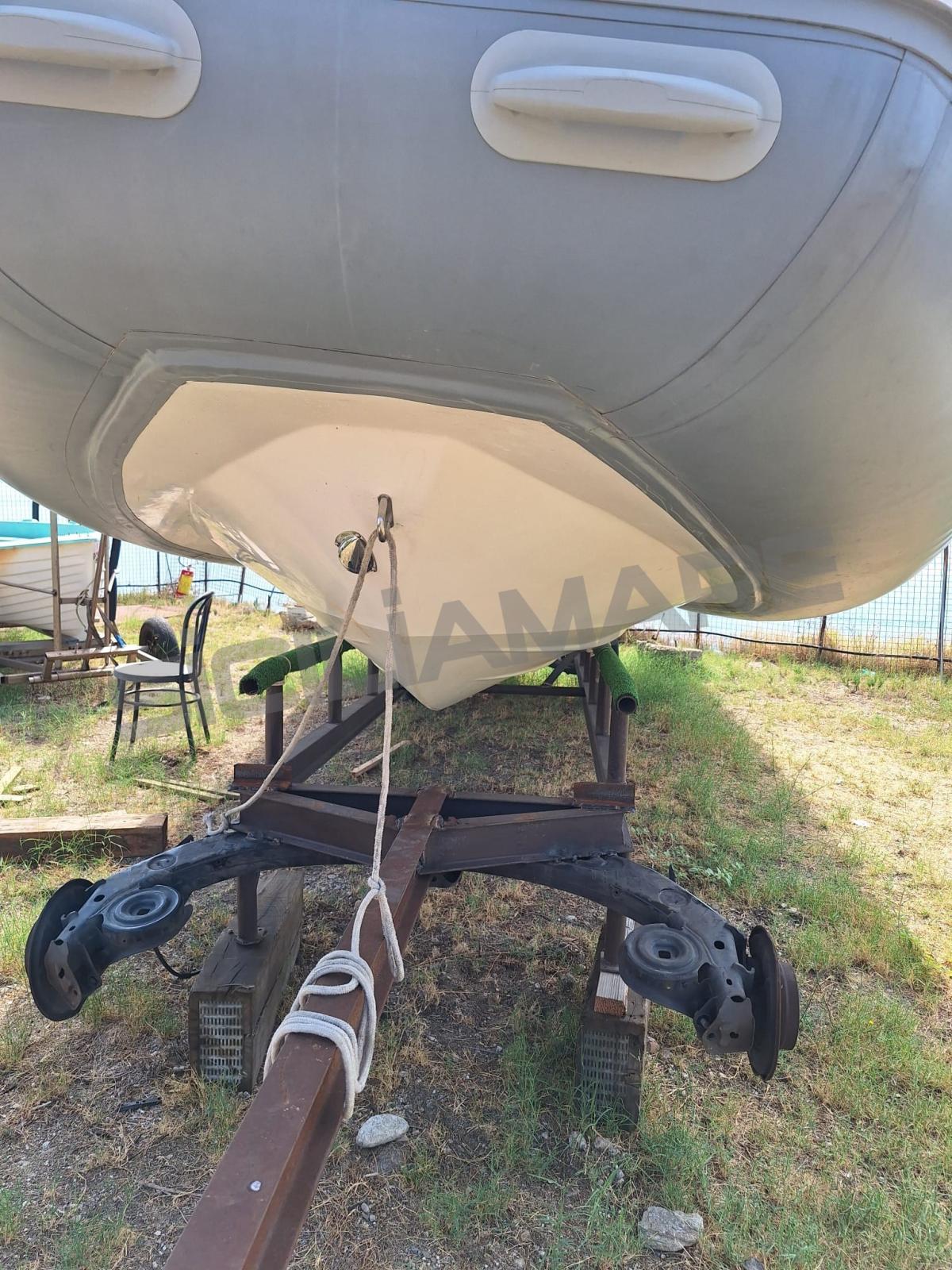 Bain de soleil avant 2,20 de long et pont arrière 1,30. Coque entièrement poncée, traitée avec 2 couches d’apprêt et 2 couches d’antifouling vénitien.