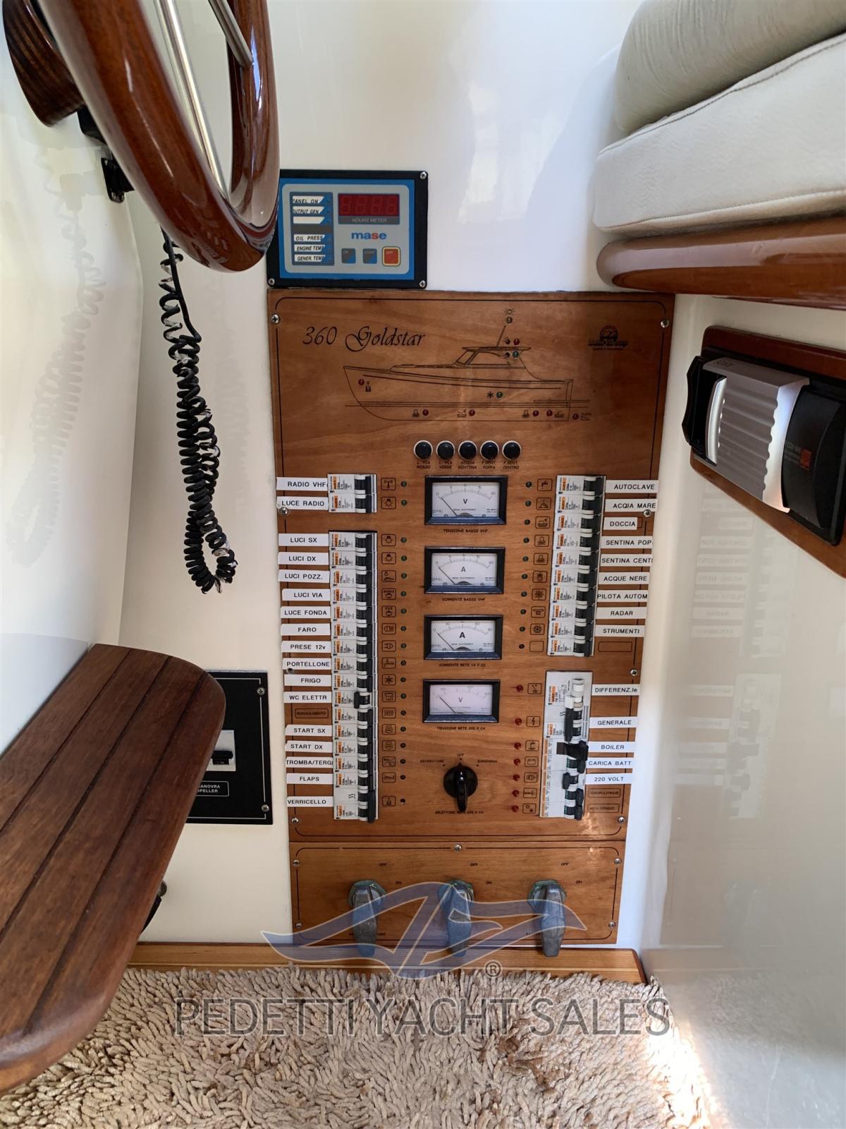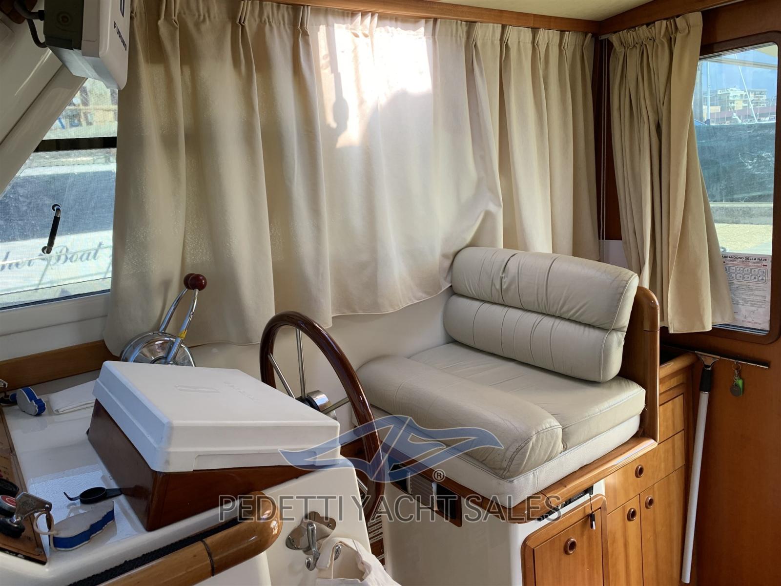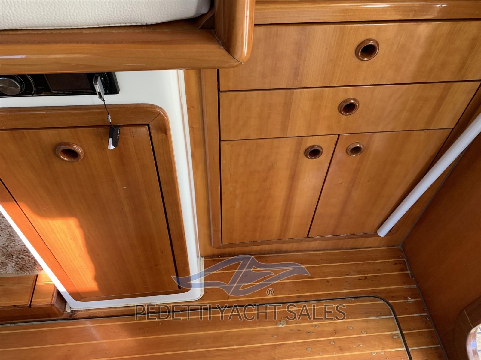 Alarme gaz, Alarme moteur, Eau sous pression, Taquets pliants, Flaps électriques, Extincteur(s) fixe(s), Indicateurs de flaps, Passerelle, Pompe de cale automatique, Cockpit en teck, Prise de quai, Onduleur, Guindeau électrique, table de cockpit.