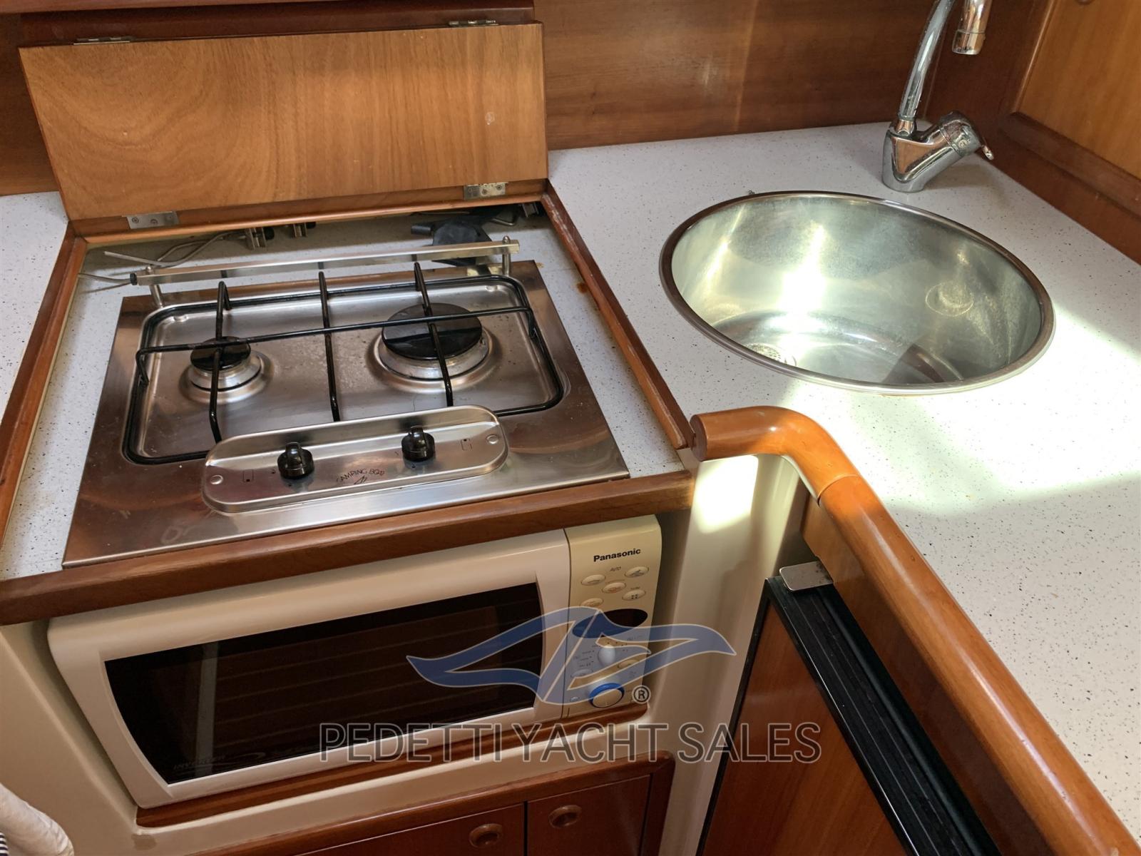Bateau bien entretenu, toujours entretenu par le même chantier naval pendant des années, l’un avec deux cabines, l’autre double, l’autre en appartement jumeau avec l’ajout d’une table avec coussin pour les rejoindre. Une salle de bain et une agréable salle à manger reliaient une grande ouverture au cockpit. La cuisine se trouve juste en dessous après la salle à manger.