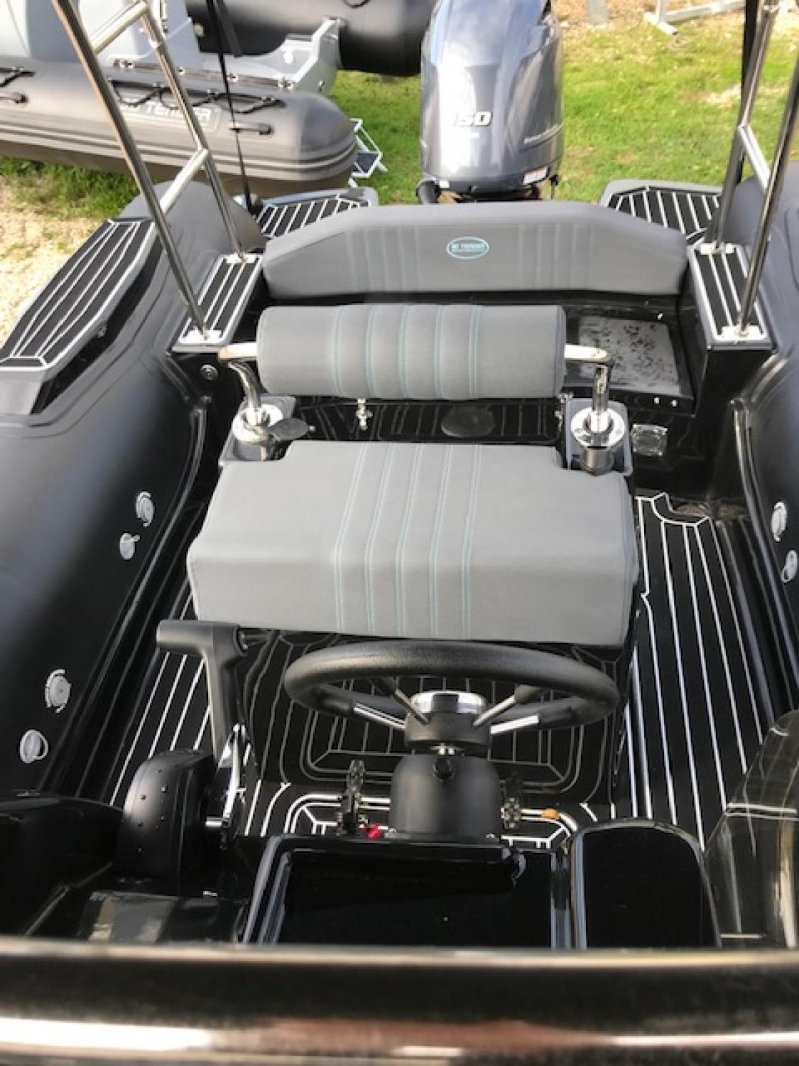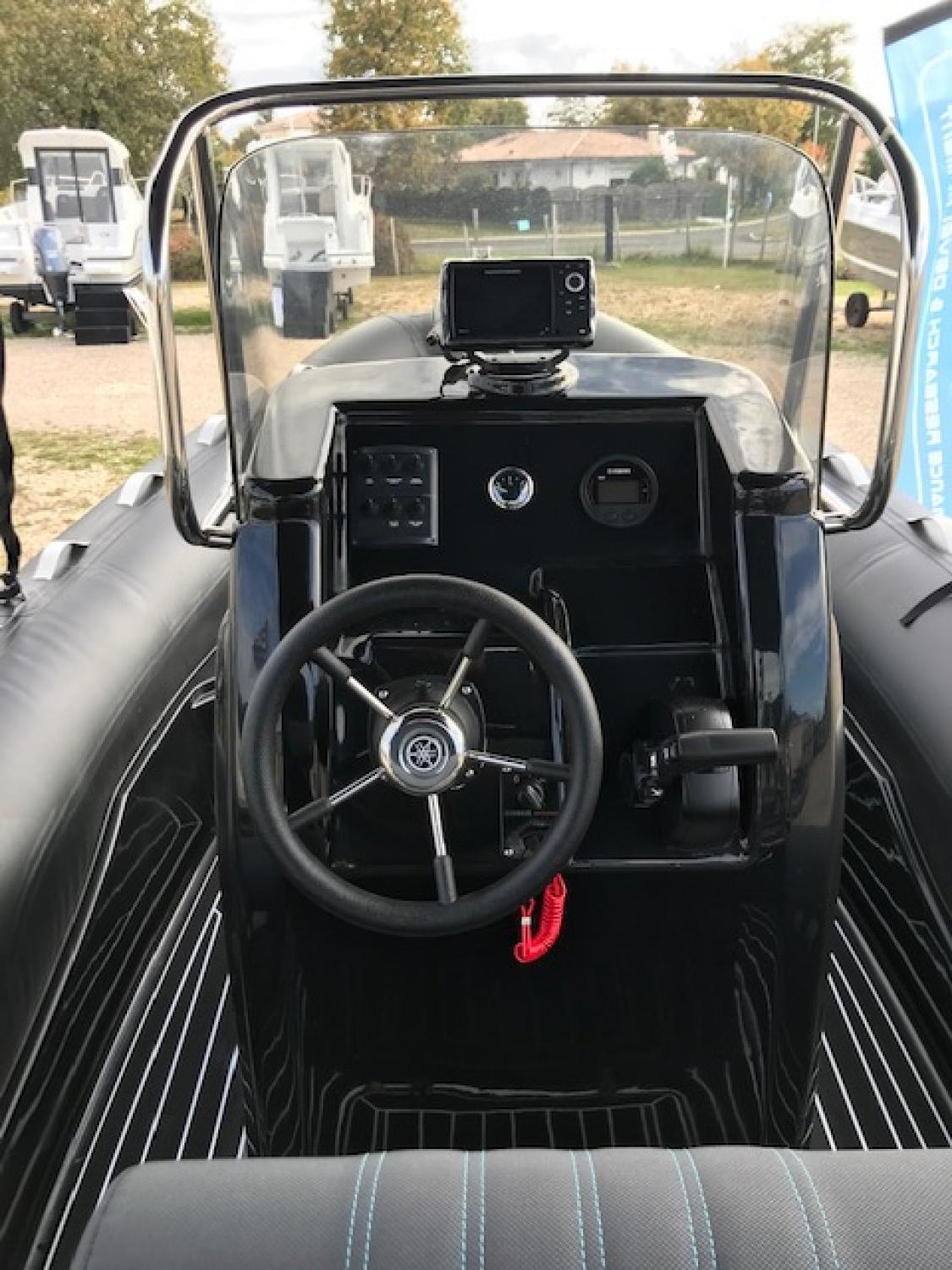 Tissus hypalon néoprène, pont auto videur, bain de soleil avant King Size, davier d'étrave, console avec pare brise enveloppant, siège pilote bolster, banquette arrière,