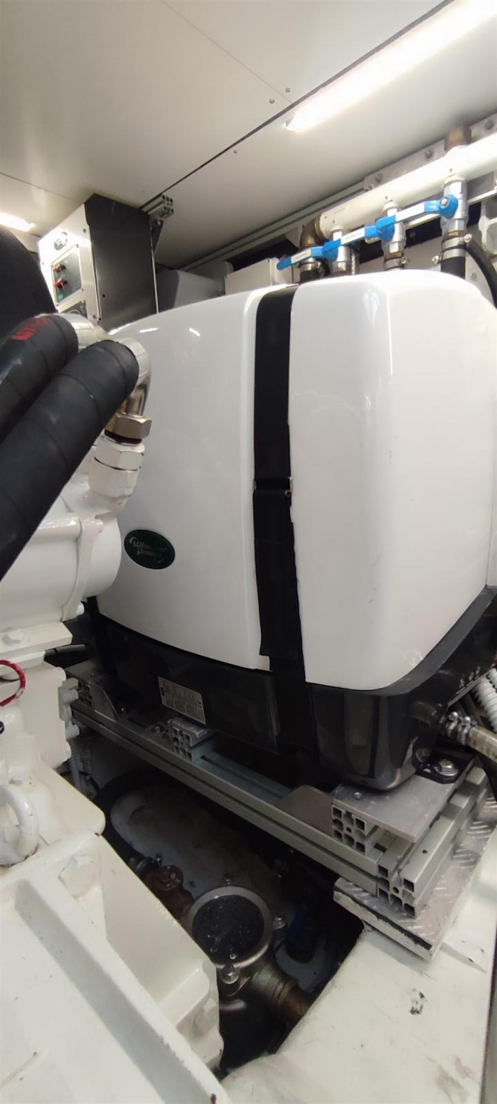 Alarme moteur, Alarme de pompe de cale, Ancre (30 Kg acciaio + 80 mt catena), Ouverture du compartiment moteur électrique, 2 Eau sous pression, 6 Batteries, 2 Système de vidange, Passavant en teck, 2 Chargeur de batterie (Motori/Servizi: Victron Skylla TG 24V/80A + Generatore: Victron Blue Smart 25A/12V), Couleur spéciale, Douche de cockpit, Propulseur d'étrave (Side Power), Phare de poursuite, 2 Flaps hydrauliques, Crochet de remorquage pour ski nautique, Hard top, Extincteur(s) fixe(s) (Max Marine in ogni ambiente), 2 Indicateurs de flaps, Lavage de chaine, Lavabo dans le cockpit, Éclairage de courtoisie, 3 Spots sous-marins, Passerelle (Besenzoni a scomparsa), Plateforme arrière (Di poppa a scomparsa), Pompe de cale automatique, Cockpit en teck, Prise de quai, Connexion eau sous pression à quai, Guindeau électrique (1800W), Echelle de bain (Integrata in sistema Besenzoni), Système de filtration des eaux usées, table de cockpit, Annexe (Geniuss 320+ 20hp), Winch électrique avant.