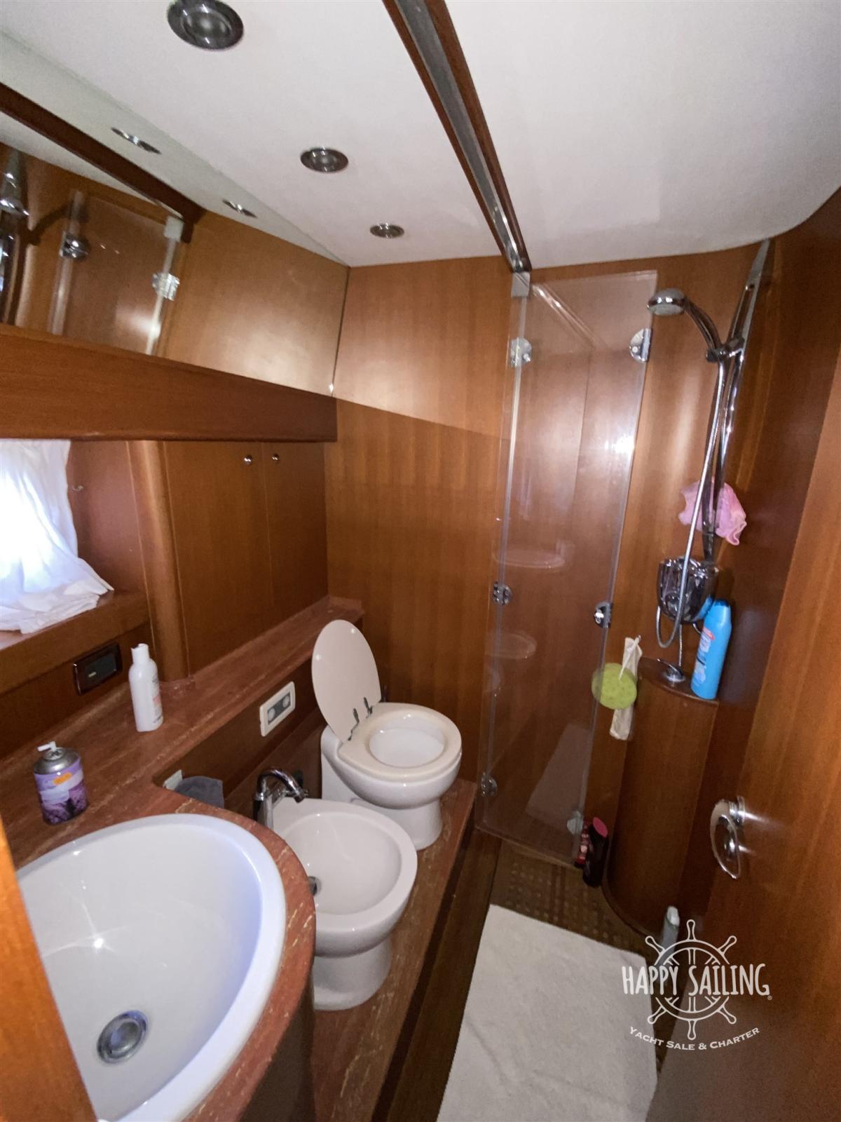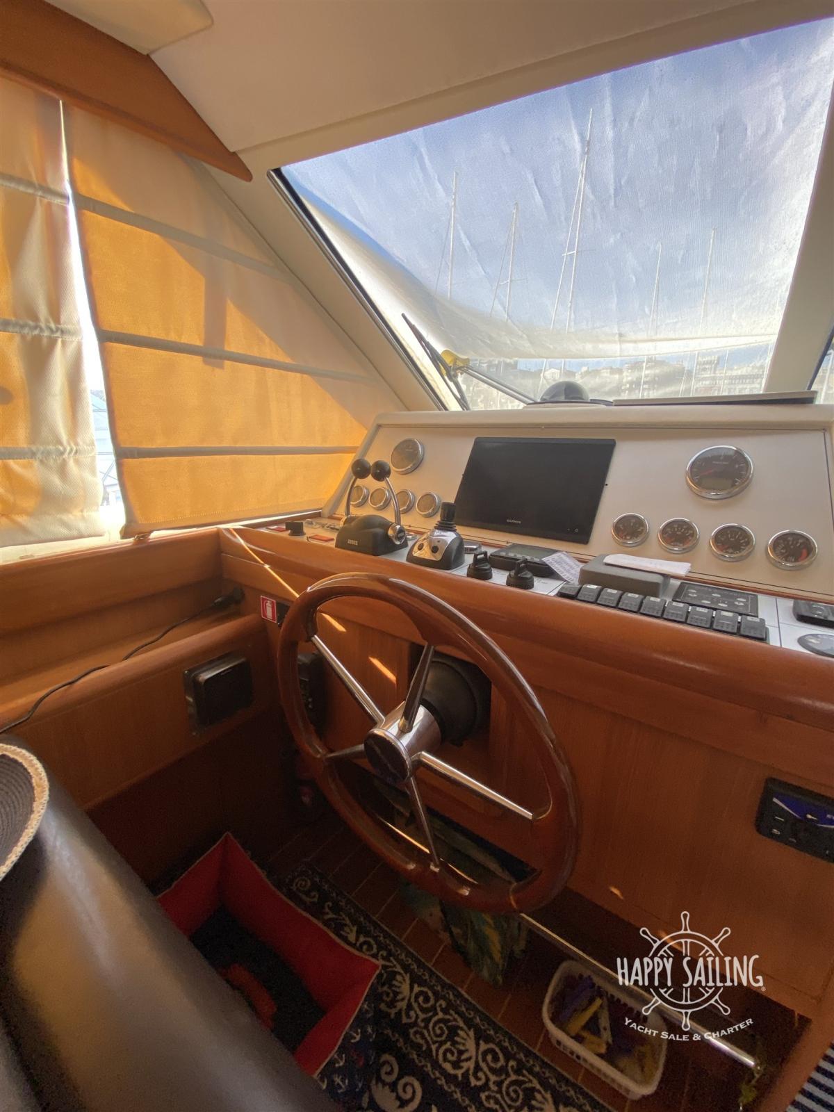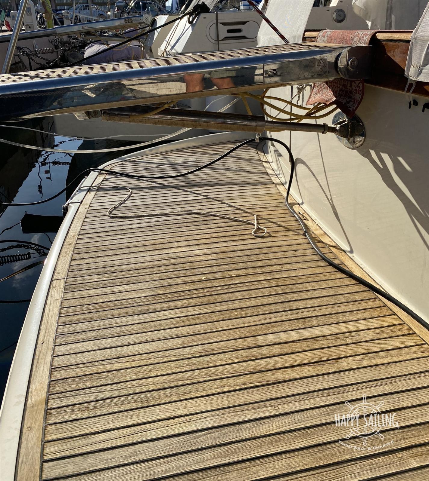 Alarme moteur, Eau sous pression, Douche de cockpit, Flaps hydrauliques, Éclairage de courtoisie, Passerelle (idraulica), Plateforme arrière (teak), Pompe de cale manuelle, Cockpit en teck, Prise de quai, Guindeau électrique, Echelle de bain, table de cockpit.