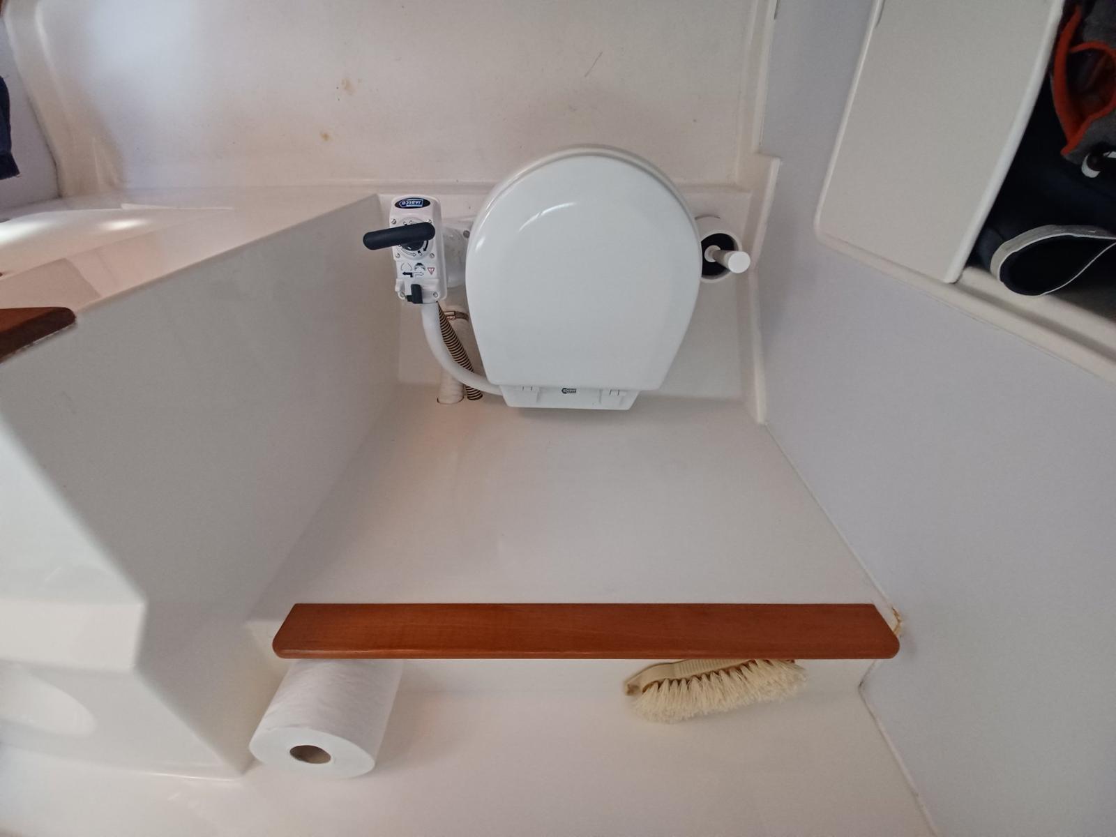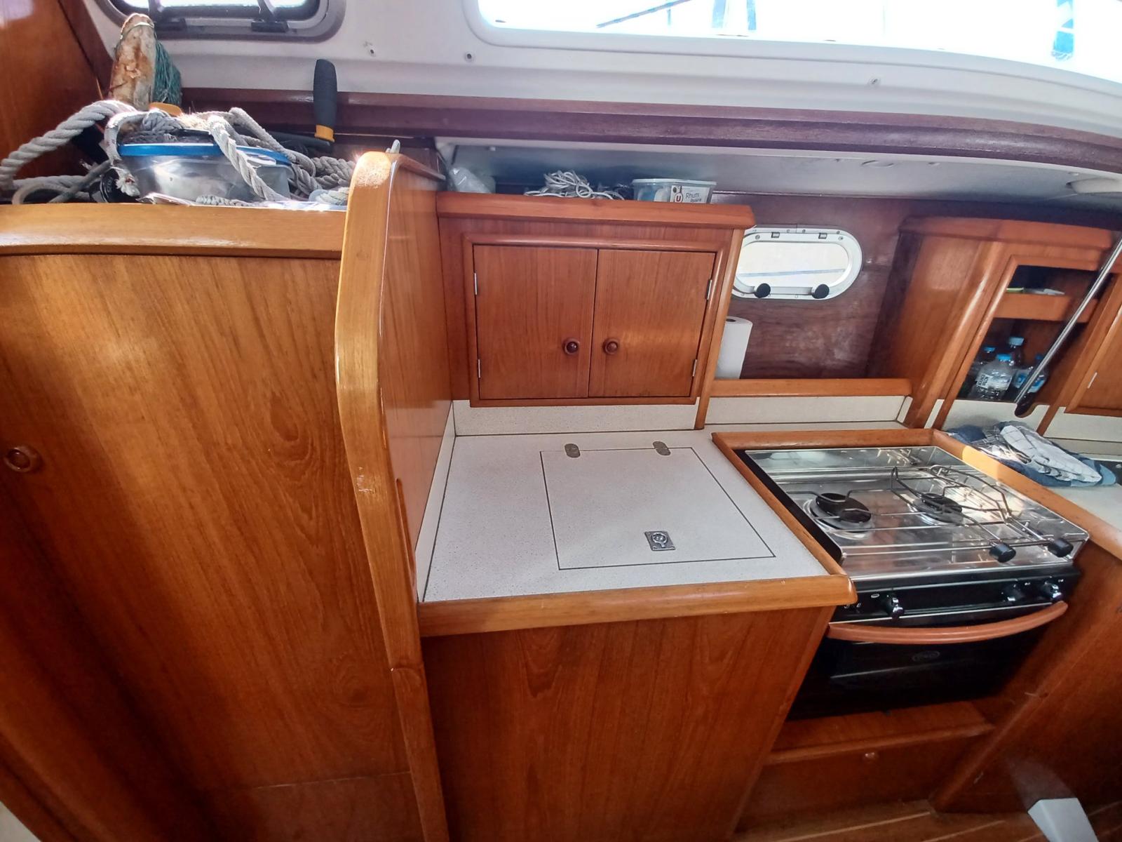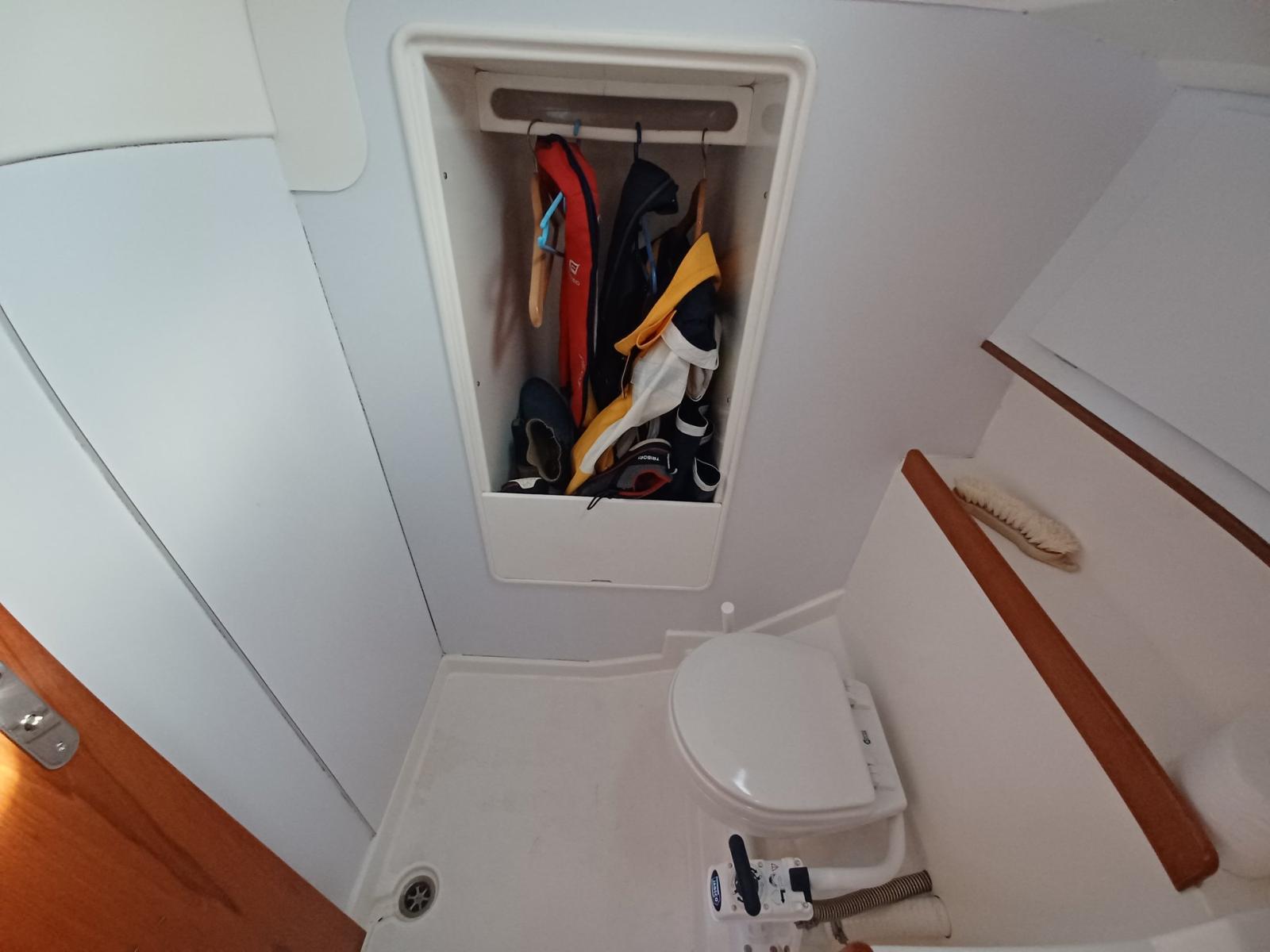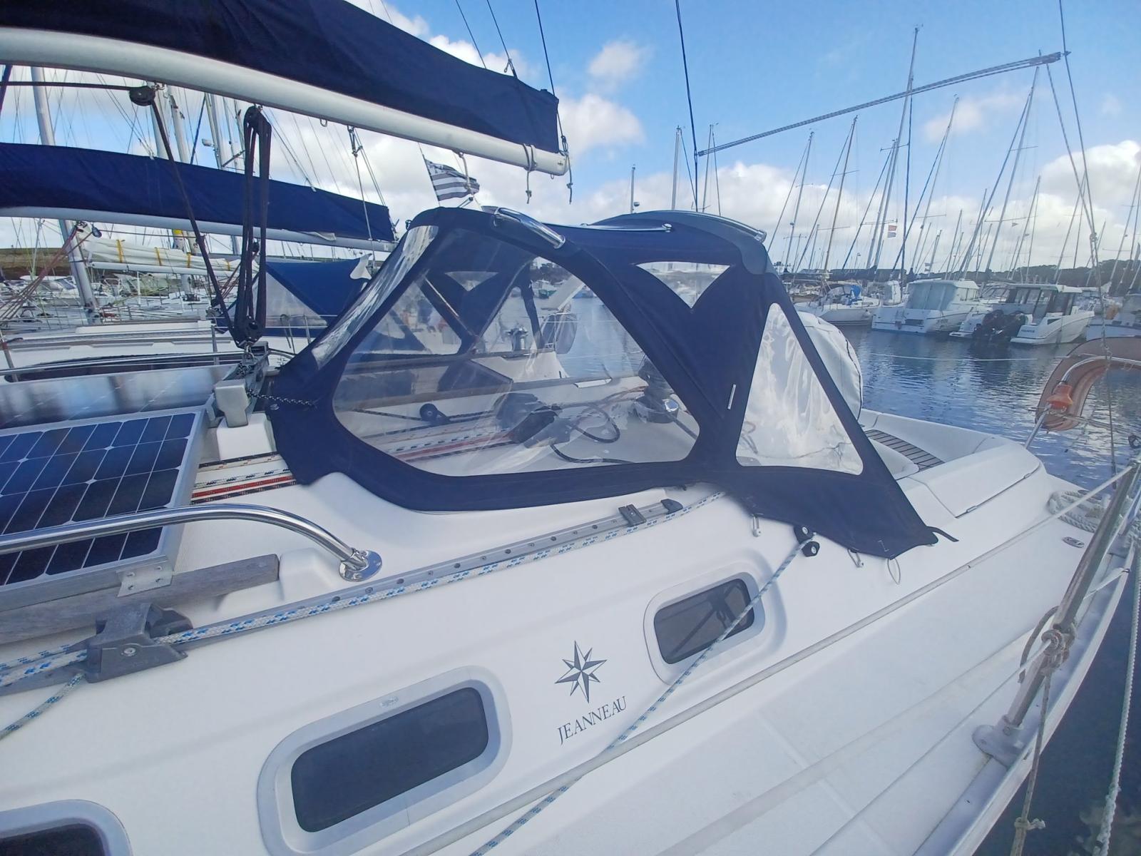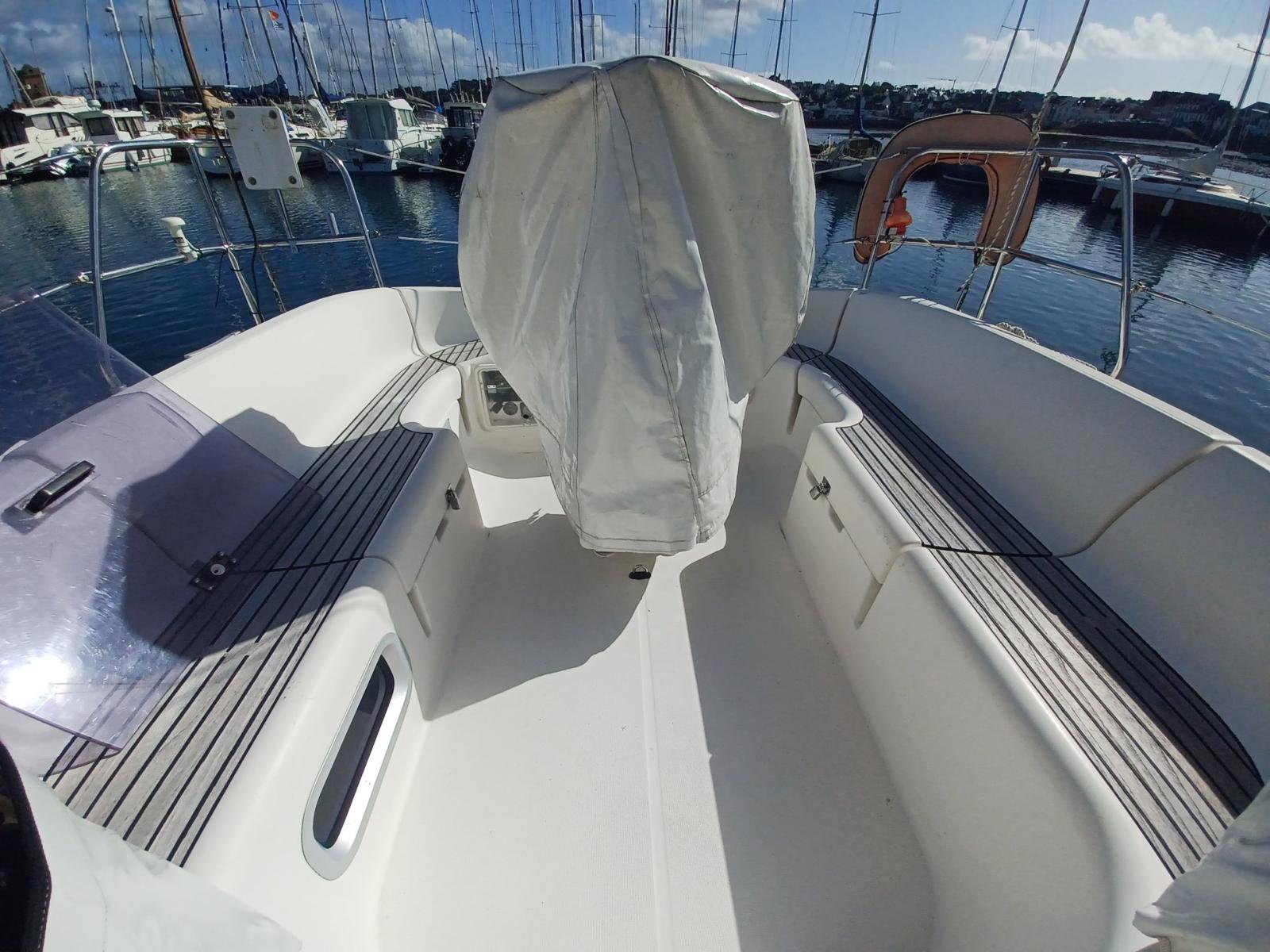 CONFORT : gazinière Cigogne ENO de 2023, WC de 2023, jupe arrière, échelle de bain inox, table de cockpit, douchette ext., eau chaude sous pression, pompe eau de mer, stickers œuvres mortes récents, chaise hors-bord.
