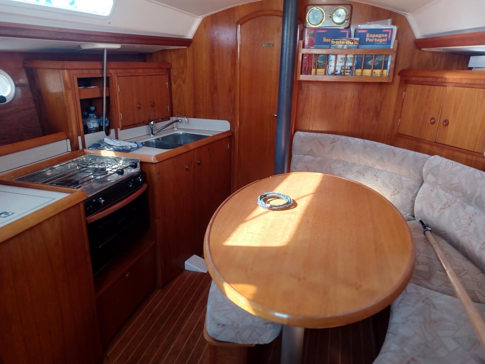 AMENAGEMENT : 2 cabines doubles, carré avec cuisine en coursive, table à cartes, vrais grande salle d’eau (WC, douche, lavabo).