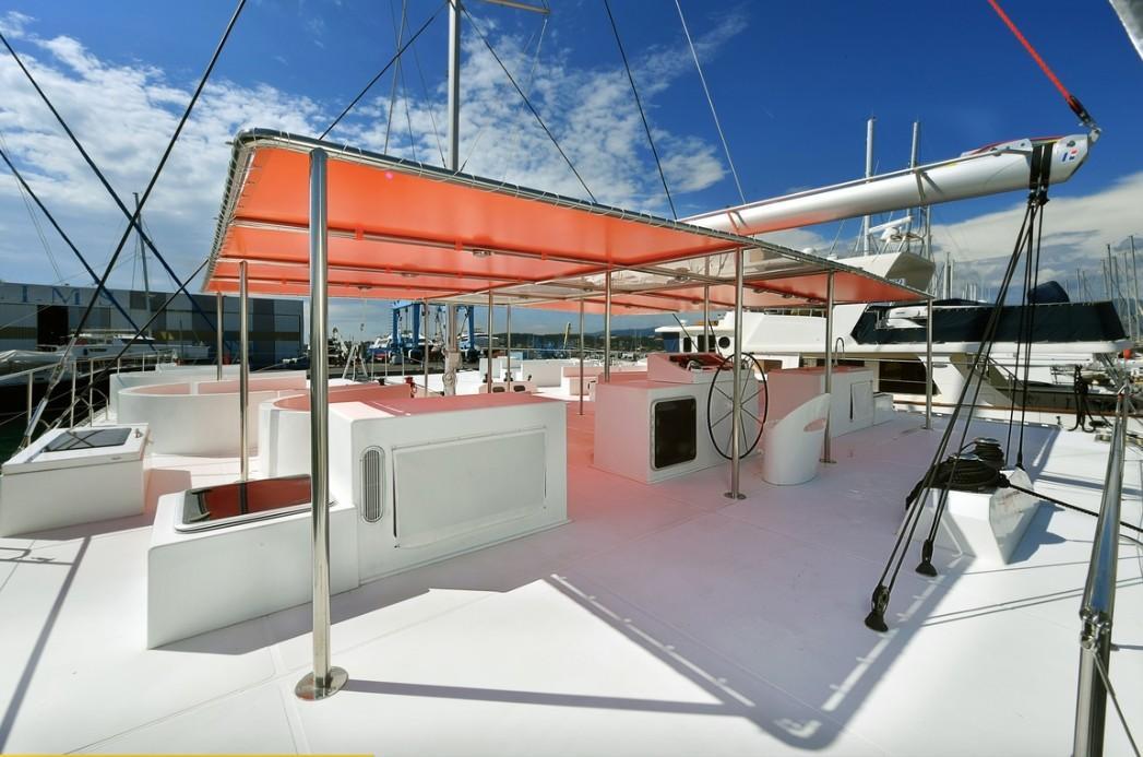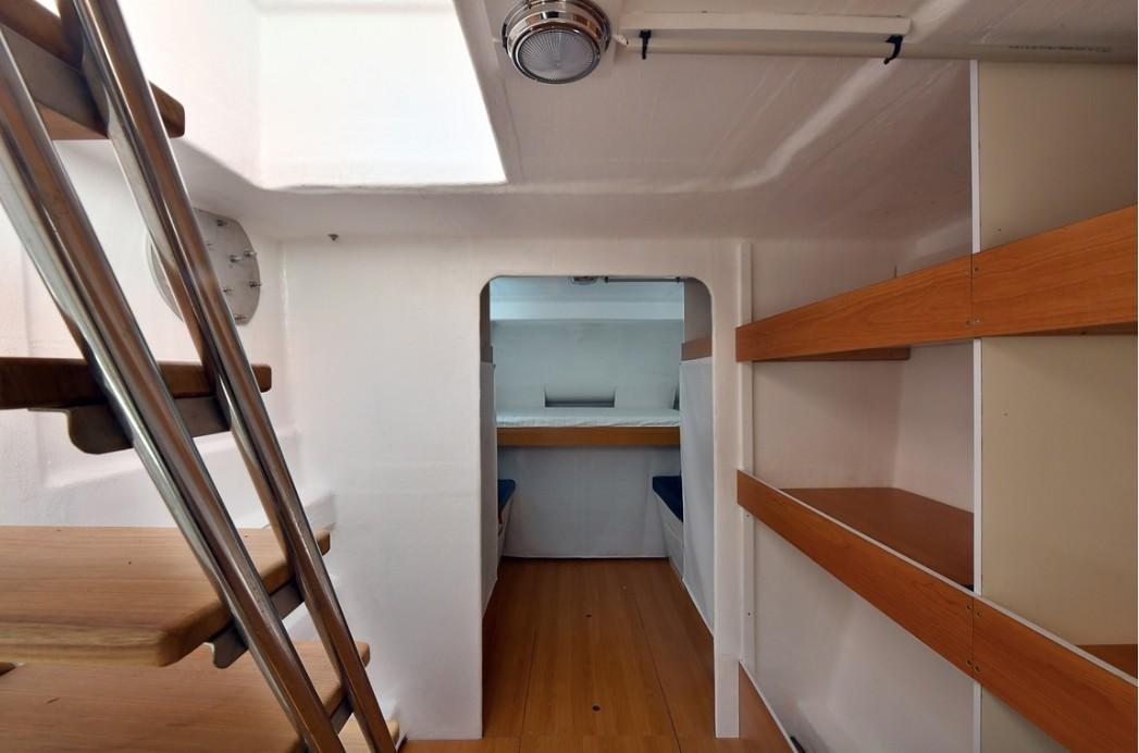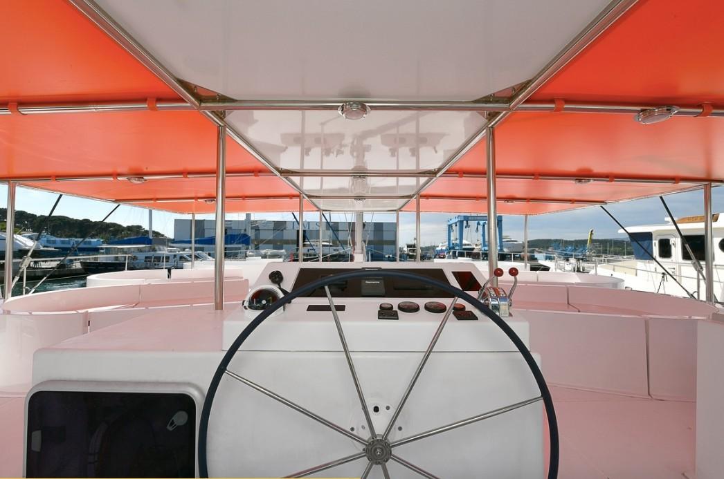 Additional InformationELECTRONICS Raymarine Tridata Pack: Depth 150 and Wind 160,Navigation Pilot Autopilot evolution with control box P70ACU400 Raymarine VHF With GPS Raymarine 52 SAILS Main Sail – Full batten with 3 reefs Genoa- Furling with UV stripe RIGGING Mast : Marcheal 22m Boom: Aluminium Furling System: Profurl C 530 Front Beam: Aluminium 6 x Winches -Harken EQUIPMENT INTERIOR Front locker: can be changed into cabin, access with ladder Crew cabin with double bed & wardrobes bathroom which includes a shower and electrical toilet Holding tank :25 liter Water capacity:330 liter Electric bildge pumps x 8 Water pressure pumps x 2 ELECTRICAL EQUIPMENT Inverter Shore power plug Battery charger Service batteries: 4x 105 Amp/h Engine batterie :140 Amp, ENGINES & PROPULSION 2 x Volvo Penta 75 HP SD Propeller – fixed Fuel tanks : 2x 330 L EQUIPMENT EXTERIOR Benches and seats for 30 passengers Galley: Bar area with sink, pressurized water, icebox and lots of storage Sea access ladder on front deck Electric shower on port side Teak steps Helm station with steering wheel in center, electrical and motor panel Bimini on stainless steel poles, center part is rigid, sides are covered with lateral canvas LED lighting in cockpit Hydraulic steering system: Le Comble et Schmitt ANCHOR SYSTEM Anchor :40 kg, 60 m chain ,12 mm Anchor Winch: Lofran Falcon 1700 watt OTHERS: Stability for 120 persons, Boat conforms to European Directive CE 2013/53 verified by International Marine Certification Institute (IMCI), Veritas certification for Hulls