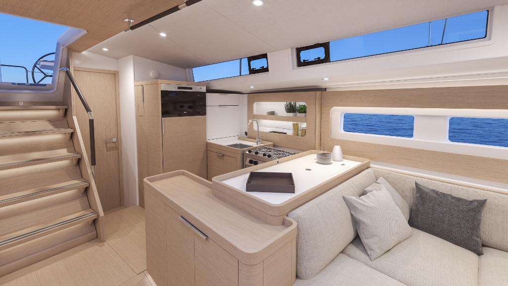 • 1 Engine access through companionway (opening with 2 gas struts)