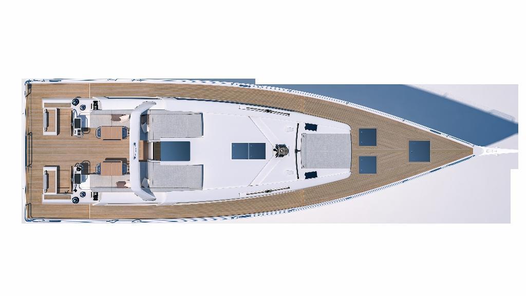 • Deck in glass fibre/balsa wood sandwich infusion, with non-slip