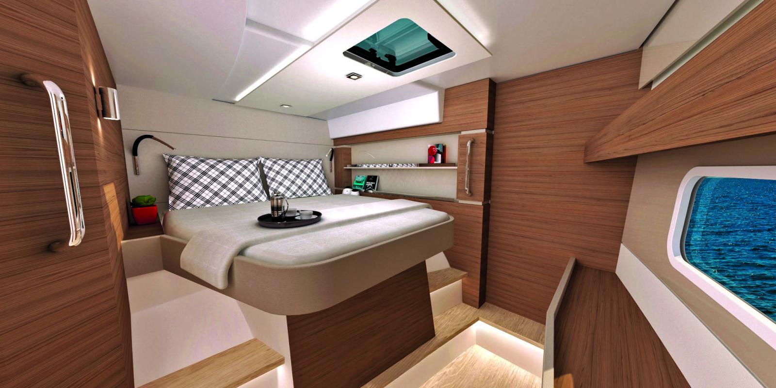 Etagère dans cabine avant transformable en 3ème couchette