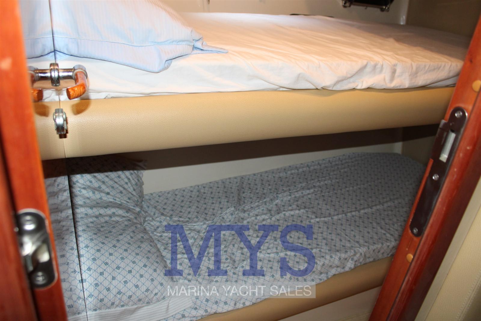 Alarme moteur, Eau sous pression, Passavant en teck, Douche de cockpit, Double barre à roue, Phare de poursuite, Flaps hydrauliques, Extincteur(s) fixe(s), Indicateurs de flaps, Éclairage de courtoisie, Passerelle, Plateforme arrière, Pompe de cale automatique, Porte latérale, Cockpit en teck, Prise de quai, Connexion eau sous pression à quai, Répétiteur électronique, Rollbar, Guindeau électrique, Echelle de bain, table de cockpit, Table pliante de salon, Corne.