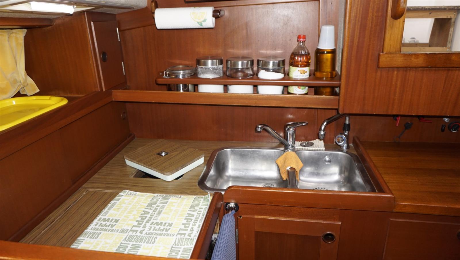 Alarme moteur, Ancre (CQR + 50 m 8 mm chain), Eau sous pression, Batteries (3 x 2024 + ripartitore carica 2024), Douche de cockpit (h/c), Moteur d'annexe (YAMAHA 2,5 hp), Passerelle, Plateforme arrière, Pompe de cale automatique, Pompe de cale manuelle, Cockpit en teck, Prise de quai, Connexion eau sous pression à quai, Guindeau électrique, Gréement monotoron (2010 VELSCAF + forestay 2018), Echelle de bain, Chaise support HB, table de cockpit, Annexe (ARIMAR 210), Windex.