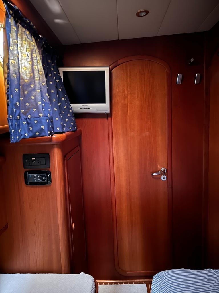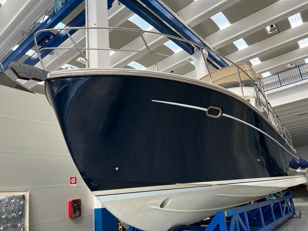 GOLD STAR 440 FLY en très bon état, couleur coque bleue avec habillage complet fait en 2021. Générateur 6 Kw E70639 - AXIOM+ 12 RV 12.1 Écran multifonction couleur WiFi et tactile avec sondeur 600W, Down-Side-3DRealVision intégré. E70637 - AXIOM+ 9 RV Écran multifonction 9 » WiFi et Touch couleur avec sondeur 600W, intégré Down/Side/3DRealVision T70417 - Quantum Q24D Radar Doppler 18 » E70493 - VHF RAY91 BLACKBOX AVEC RÉCEPTEUR AIS INTÉGRÉ A80614 - STng alarme auxiliaire. Pilote automatique avec double poste de commande Treuil - ancre - chaîne galvanisée de 10 de 2023. Auvents de cockpit, auvents de flybridge, cockpit, flybridge et coussins d’étrave à partir de 2022. Passerelle hydraulique. Volets avec double poste de commande. Propulseur d’étrave avec double poste de commande. Dessus bleu avec habillage intégral réalisé en 2021. Ouverture extérieure de la dinette au cockpit rénovée en bois en 2023. Motorisation : 2 IVECO FTP 400 heures, 650 un moteur révisé à zéro heure en août 2024 et nouveau câblage des deux moteurs.