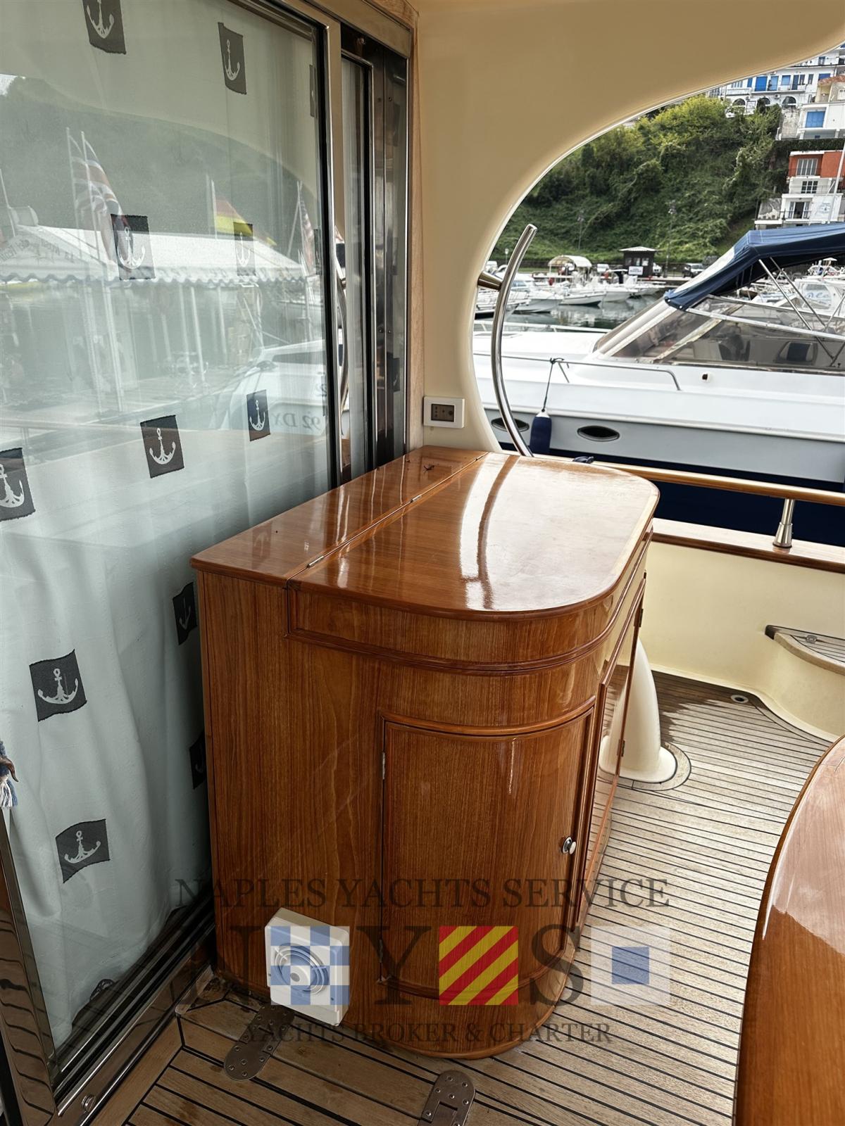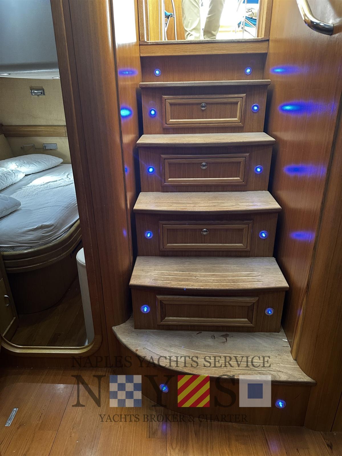 Alarme moteur, Alarme de pompe de cale, Eau sous pression, Propulseur d'étrave (SIDE POWER), Éclairage de courtoisie, Passerelle (BESENZONI), Plateforme arrière (PROFILO IN ACCIAIO INOX), Cockpit en teck, Prise de quai, Onduleur (MASTERVOLT), Guindeau électrique, table de cockpit (CON RIPIANO LUCIDO).