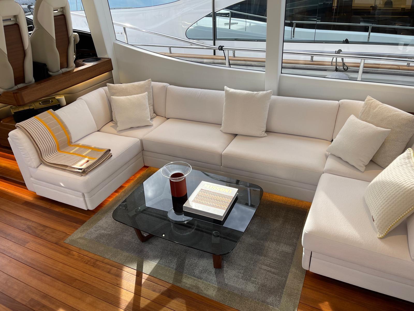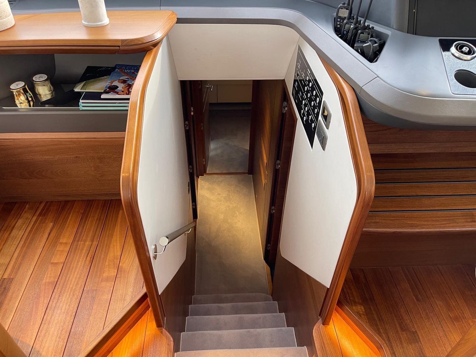 Alarme moteur, Alarme de pompe de cale, Trim hydraulique, Passavant en teck, Douche de cockpit, Flaps hydrauliques, Grue de flybridge, Extincteur(s) fixe(s), Indicateurs de flaps, Jet Boat, Lavage de chaine, Éclairage de courtoisie, Passerelle, Porte latérale, Cockpit en teck, Echelle de bain, Stabilisateurs, table de cockpit, Annexe, Pont en teck, Winch électrique arrière, Winch électrique avant.
