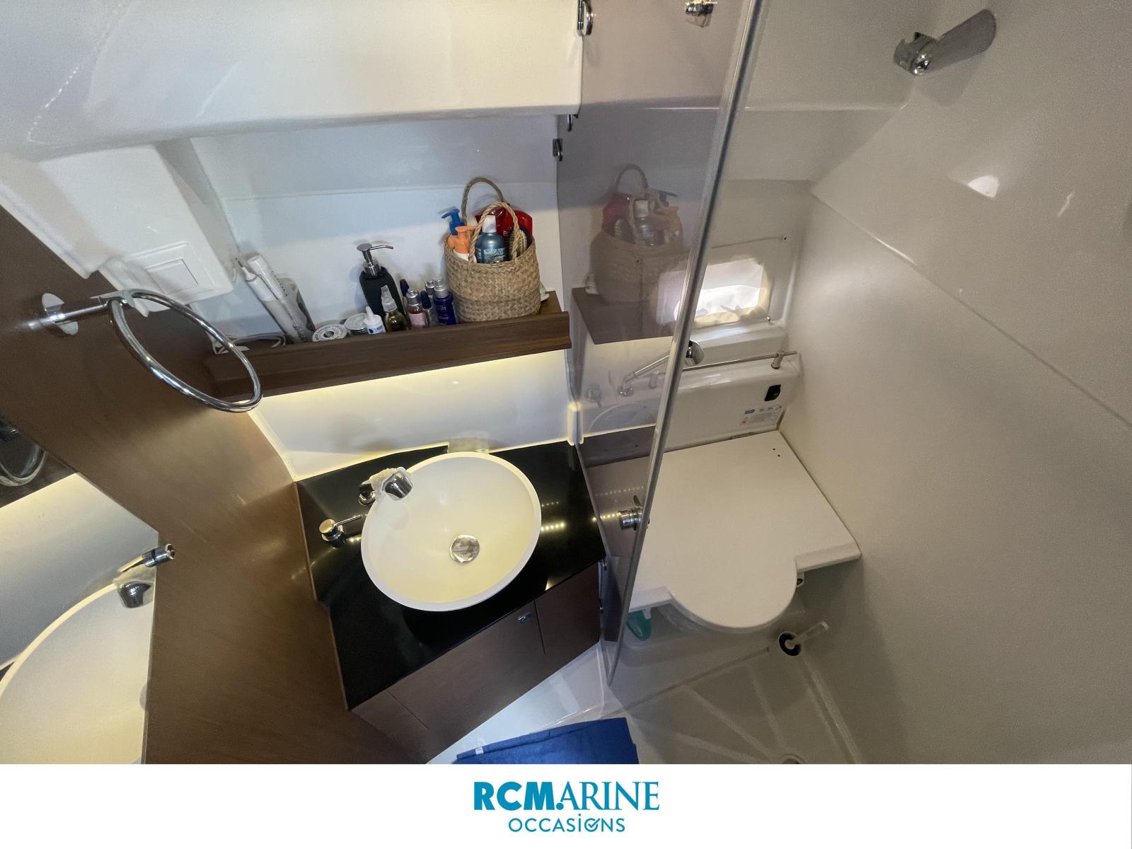 En navigation, il offre deux places cheveux au vent sur des sièges bolsters face au poste de pilotage, et plusieurs autres plus abritées dans le carré de cockpit en L à l’arrière. Au mouillage, le bateau s’adapte à vos envies : bain de soleil, accès à la baignade, coin repas avec une cuisine extérieure et réfrigérateur.