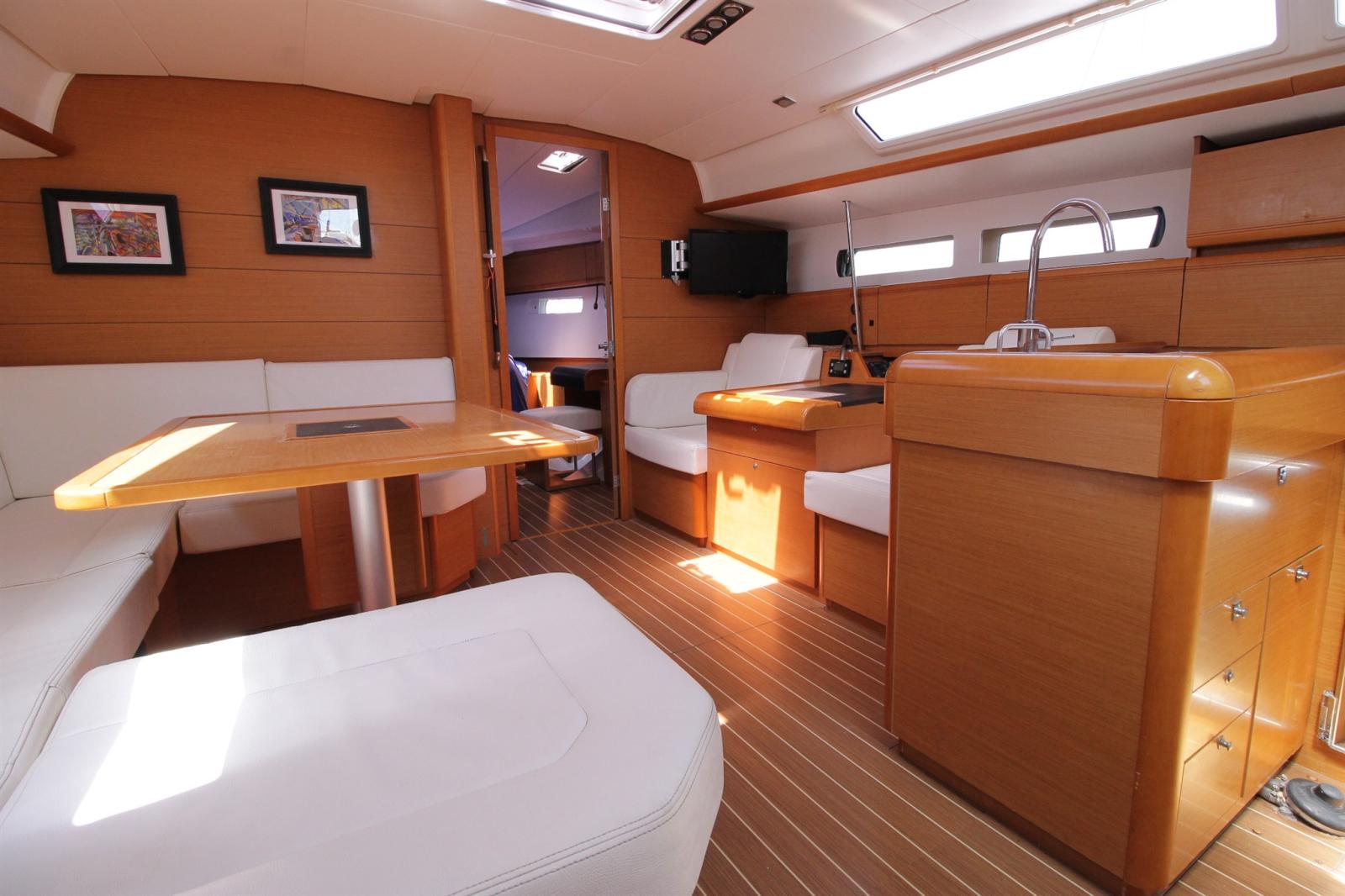 Ancre (SPADE 30Kg + 70m de chaine neuve en 10), Eau sous pression, 3 Batteries (x 225 ah AGM neuves (mai 2023)), 2 Chargeur de batterie (60ah Victron Energy et 40ah Cristec), Douche de cockpit (avec mitigeur), Double barre à roue, Propulseur d'étrave (tunnel), Bossoirs pour annexe (sur portique inox), Moteur d'annexe (Honda 5cv 4temps), 2 Panneau solaire (x 300w sur portique), Pompe de cale manuelle, Prise de quai (220v), Guindeau électrique (1500w avec compteur de chaine dans cockpit), Echelle de bain, table de cockpit, Annexe (semi rigide), Winch (ST HARKEN), 3 Winch électrique (ST HARKEN dont 2 pour genois 1 pour drisse).