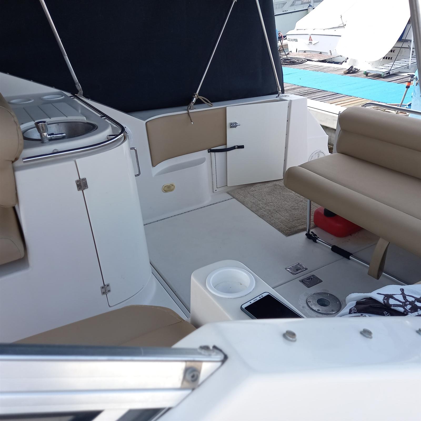 Eau sous pression, Douche de cockpit, Flaps hydrauliques, Extincteur(s) fixe(s), Indicateurs de flaps, Éclairage de courtoisie, Plateforme arrière, Pompe de cale automatique, Prise de quai, Connexion eau sous pression à quai, Rollbar, Guindeau électrique, Echelle de bain, table de cockpit, Corne.