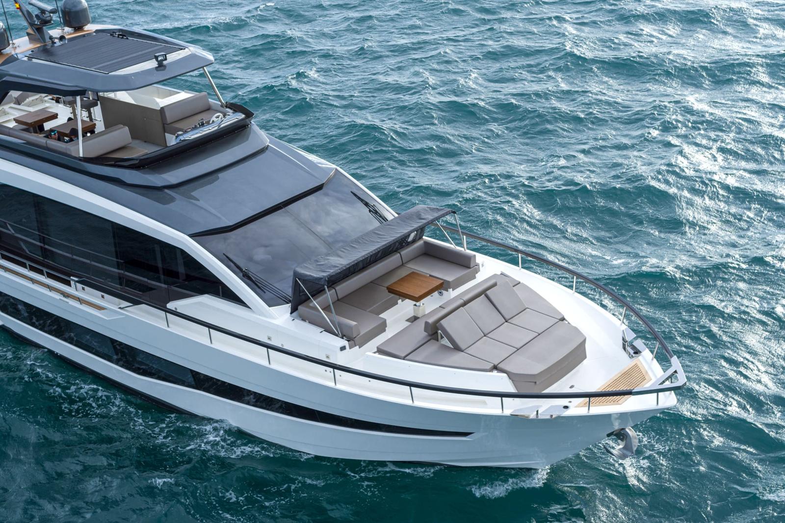 Le nouvel AS8 s’impose comme une véritable « Masterpiece of the Sea », un yacht de 25,03 m de long et 6 m de large qui allie design contemporain, allure sportive et savoir-faire artisanal. Les imposantes vitrées latérales et l’aménagement innovant du pont principal, où s’intègre la cuisine ouverte, soulignent son caractère avant-gardiste. Propulsé de série par 2 × MAN V12-1600 ou en option par 2 × MAN V12-1900, il atteint une vitesse maximale de 32 nœuds tout en conservant une structure robuste certifiée RINA. Conçu pour accueillir 8 passagers + 4 membres d’équipage, avec 4 + 2 cabines, coque en GRP et déplacement à vide de 61,72 tonnes US, il incarne à la fois performance, confort et prestige. Le chantier Astondoa, avec plus d’un siècle d’expérience, signe ici un yacht fini avec un souci du détail remarquable où chaque surface, intérieur ou extérieur, est pensé pour être unique. Disponible au départ du chantier à Santa Pola, l’AS8 est proposé hors taxes et hors options, avec un niveau d’équipement et de personnalisation accessible sur demande.